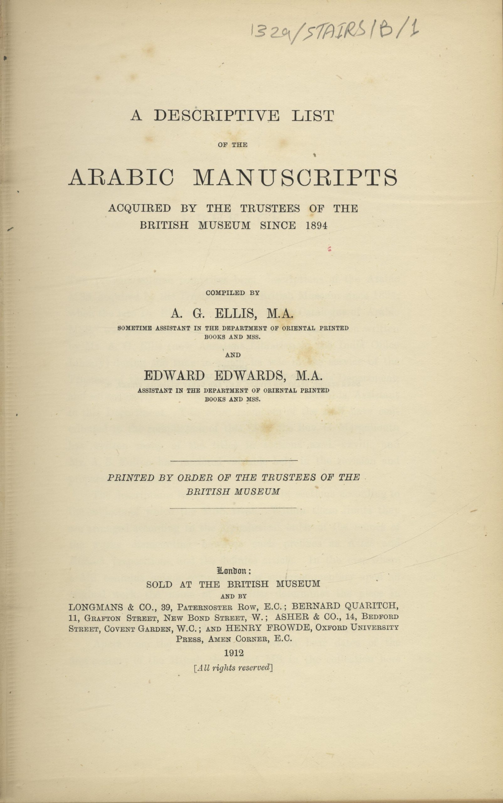 A Descriptive List of The Arabic Manuscripts Acquired by the Trustees of The British Museum Since 1894.