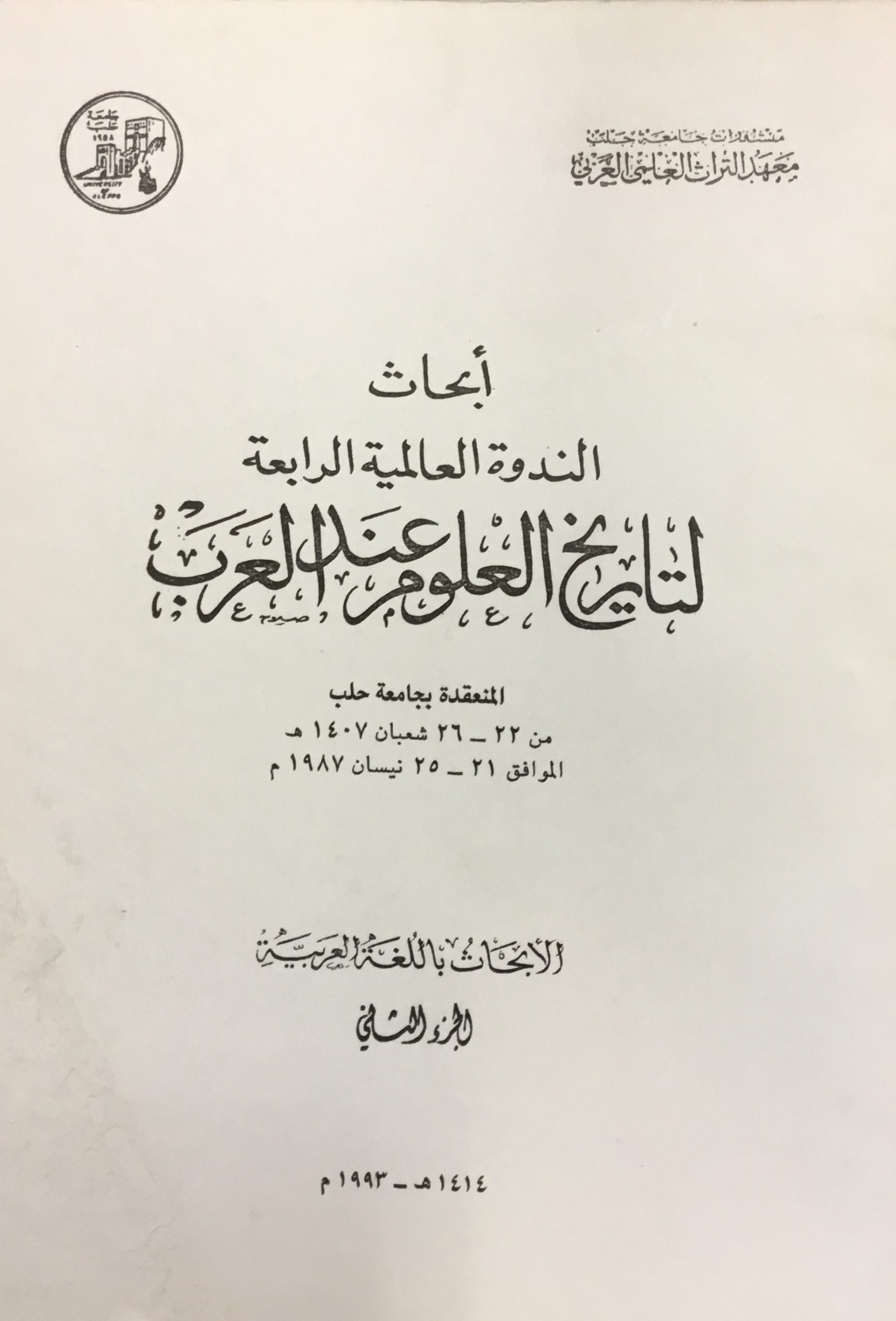 Abhath al-Nadwa al-’Arabiyya al-Rabi’a Li Tarikh al-’Ulum ‘ind al-’Arab. TWO VOLUMES.