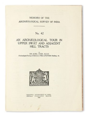 One of 750 copies only. Sir Aurel Stein’s work in North-West Frontier Province, Pakistan, includes archaeological tours, survey work and excavations carried out during his service in India from 1898 to 1928. Many of the sites visited by Stein had never been explored by Europeans before. Most of them yielded Buddhist remains, though his main interest in the region was to follow Alexander the Great’s route to the Indus. Throughout his work, Stein made attempts to identify sites with references both to Classical and Buddhist sources. Although not all identifications were correct, some proved to be valid and have paved the way for later archaeologists. Stein retired from service in India in 1917 but obtained an extension of service on ‘special duty’ to work on publications, the collections from his third Central Asian expedition and other projects until 1928. It was during this time that he returned to conduct another archaeological tour in Upper Swat, a place he had long wanted to visit, in search of Aornos, the site of Alexander’s last siege before advancing to the Indus. Swat, historically known as Uddyana (lit. Garden) is a river valley and an administrative district in the Khyber Pakhtunkhwa Province of Pakistan. It is the upper valley of the Swat River, which rises in the Hindu Kush range. The capital of Swat is Saidu Sharif, but the main town in the Swat valley is Mingora. It was a princely state until 1969 when it was dissolved alongside the states of Dir and Chitral and made part of Khyber Pakhtunkhwa, then known as North-West Frontier Province. Ethnic Pashtuns and Gujjar and Kohistani communities mostly populate the valley.