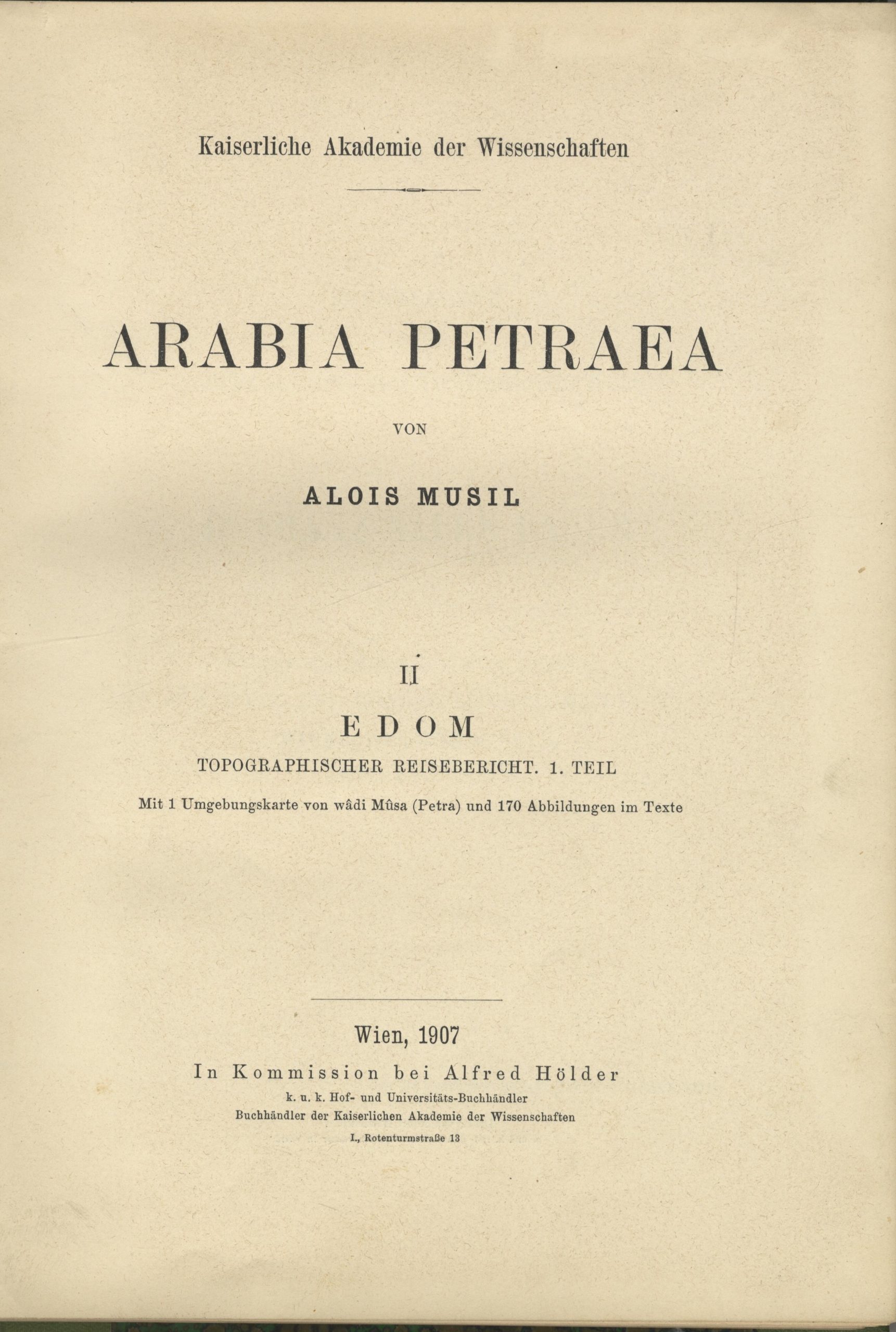 The Austria-Czech orientalist, theologian and geographer Alois Musil (1868-1944) from 1896 to 1902 took several research trips through Arabia and the Holy Land. His maps Petraea Arabia, published in 1907, were the first scientific inventory of the Nabatean antiquities, including the ruins of Petra.