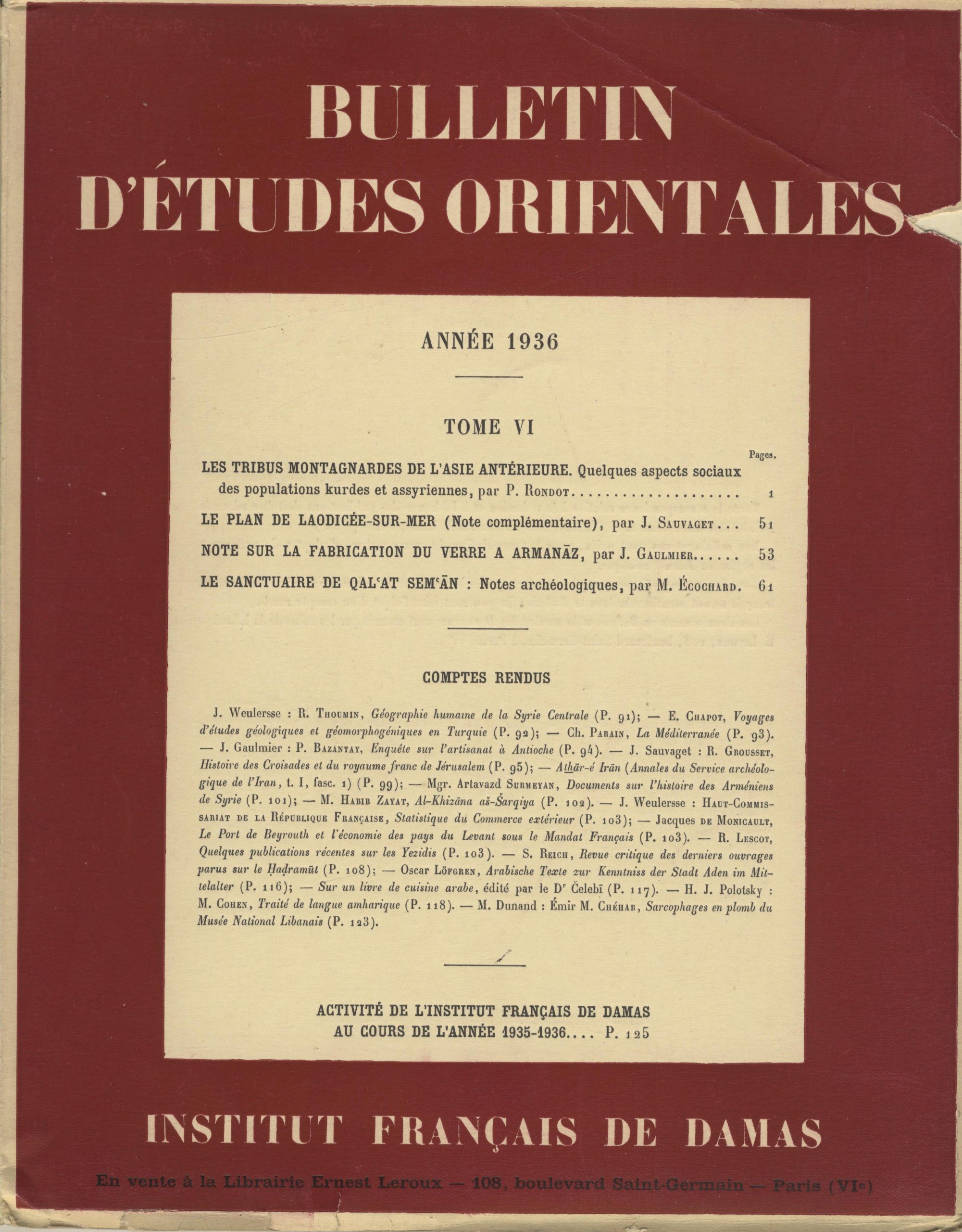 Bulletin d’Études Orientales Tome VI, Année 1936.