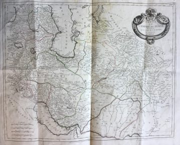 A fascinating late eighteenth-century wall map of Persia, after one of France’s greatest cartographers Jean Baptiste Bourguignon d’Anville was the spiritual successor to Guillaume De L’Isle in the sense that he maintained the rigourous standard for accuracy that De L’Isle had established. D’Anville was the last French mapmaker to establish an international reputation superior to all his contemporaries, as witnessed by the respect shown by English cartographers and publishers during an era when the two countries were often at war and always hostile to one another.