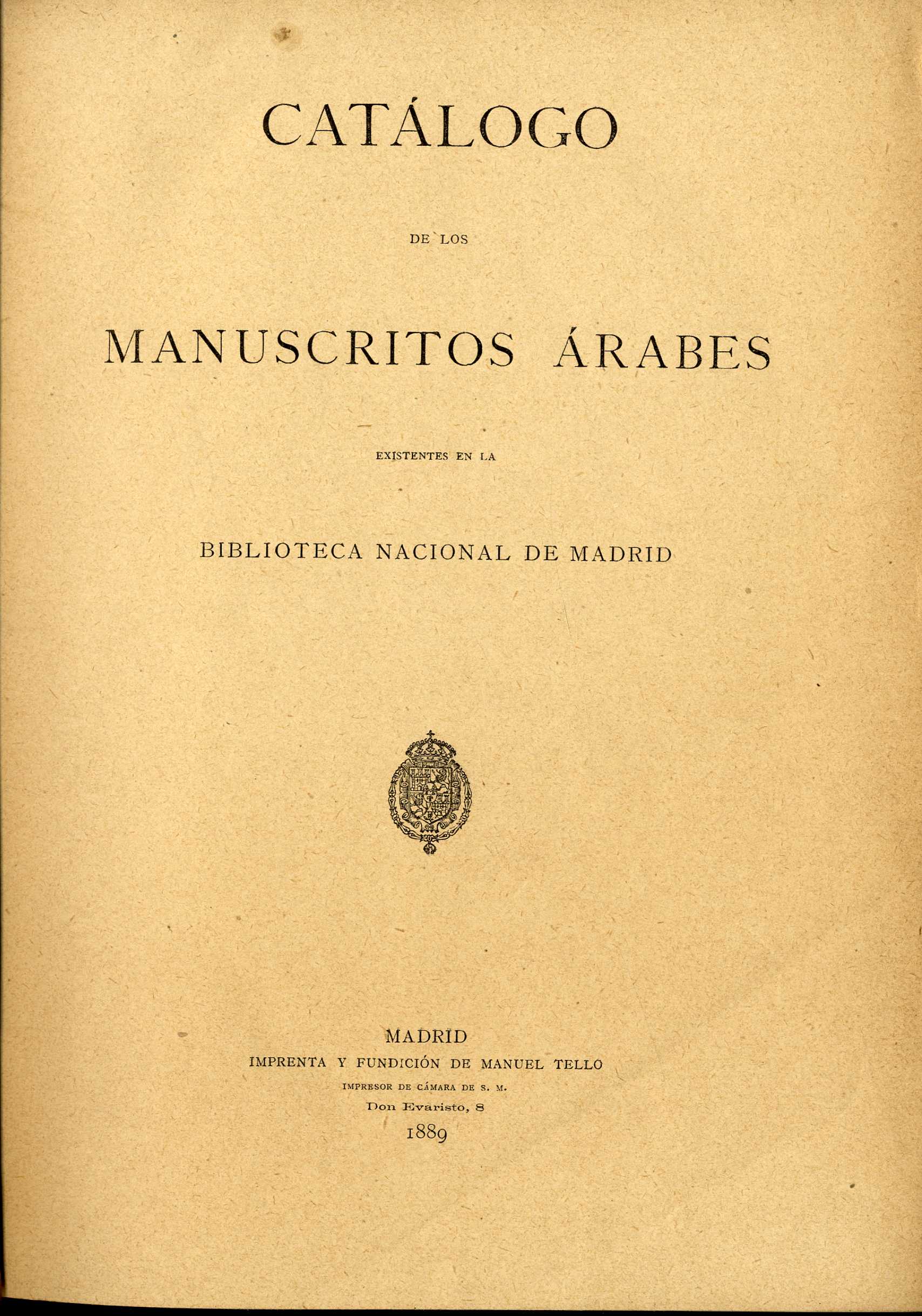 Catálogo de los manuscritos arabes existentes en la Biblioteca Nacional de Madrid.
