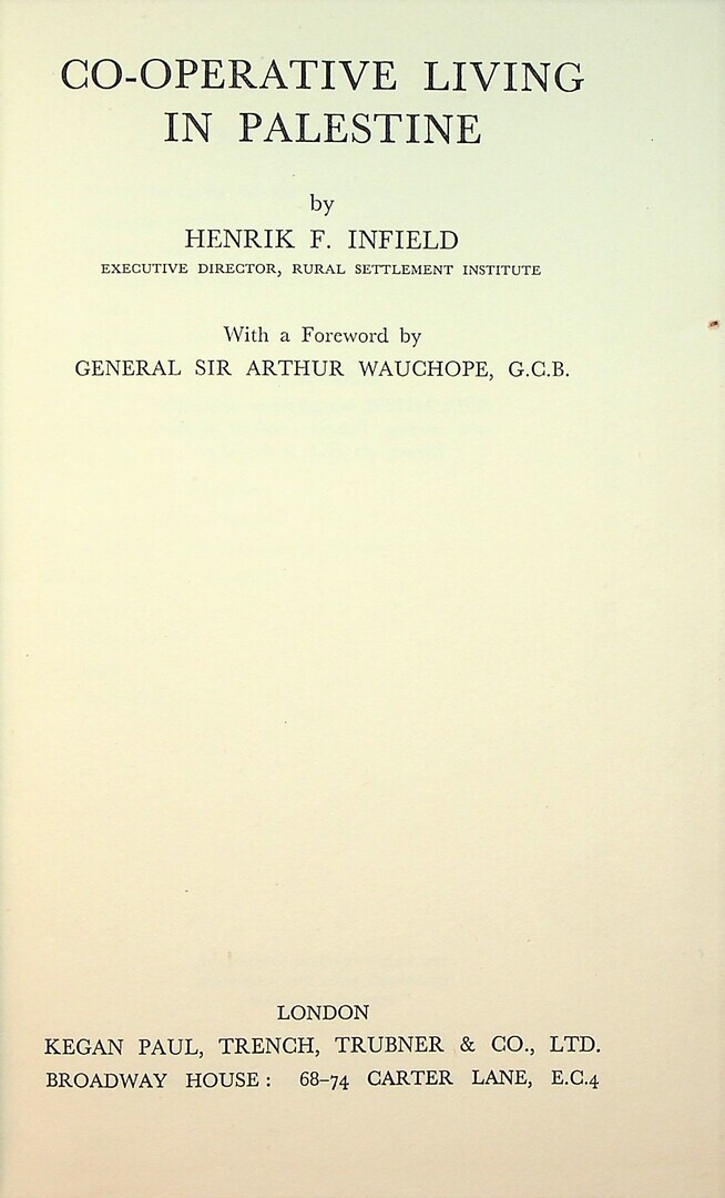 The work written by the executive director of the Zionist Rural Settlement Institute, and introduced by General Sir Arthur Wauchope.