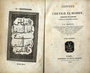 Marcel (1776-1854), was a French orientalist, a pupil of Sylvestre de Sacy, and the director of the Imperial Press, first at Alexandria and then at Cairo, during the French expedition. He later became director of the Imprimerie Imperiale in Paris. The present work was first issued in Paris in 1828 under the title Contes d’un Endormeur, ou les dix Soirees Malheureuses. In 1832-3, Felix Locquin published the first volume in 1833, while Henri Dupuy published the two other volumes in 1835 under a new title Contes du Cheikh el-Mohdy. Cf Gay 132.