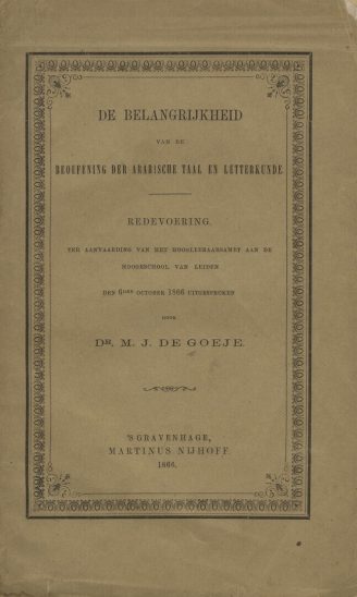 De Belangrijkheid van de Beoefening der Arabische Taal en Letterkunde.