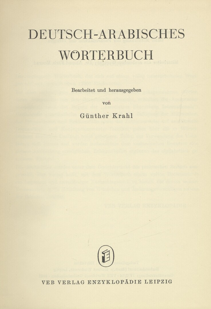 8vo. xxiii of Preface in German, 480 pp., of German and Arabic text, 25 pp., of Arabic introduction, green cloth, copy clean & in very good condition, Veb Verlag Enzyklopadie, Leipzig, 1964.