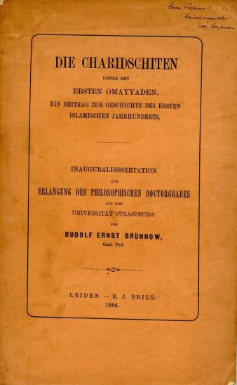 8vo. xii, 110 pp., publisher’s original wrappers, slightly soiled & worn, scattered foxing, previous owner’s inscription at top corner of upper cover, from the library of Dr GHA Juynboll, E. J. Brill, Leiden, 1884.