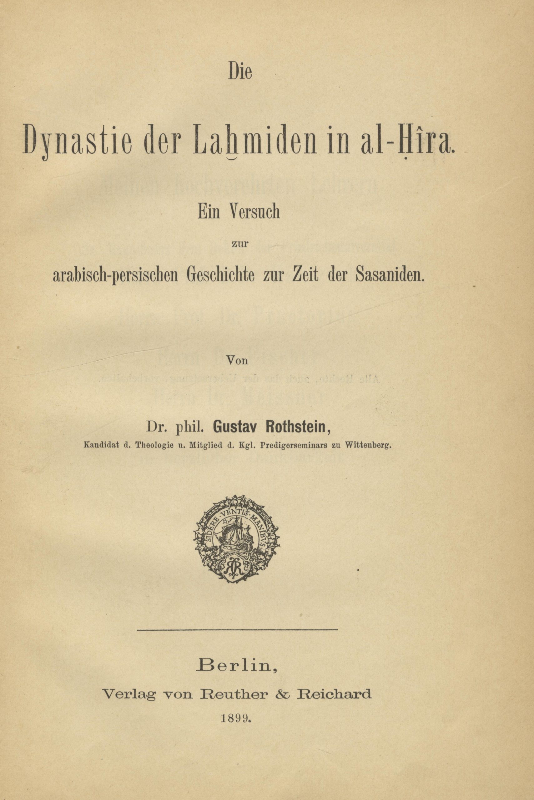 The dynasty of the Lahmids in al-Hira. An Essay on Arabic-Persian History in the Sasanian Period: A study by a leading German Orientalist discussing aspects of the Lahmid dynasty in al-Hira. Much of this work is based on original Arabic sources. Rothstein wrote another work entitled “ Islam and Jerusalem”, which appeared in 1910.