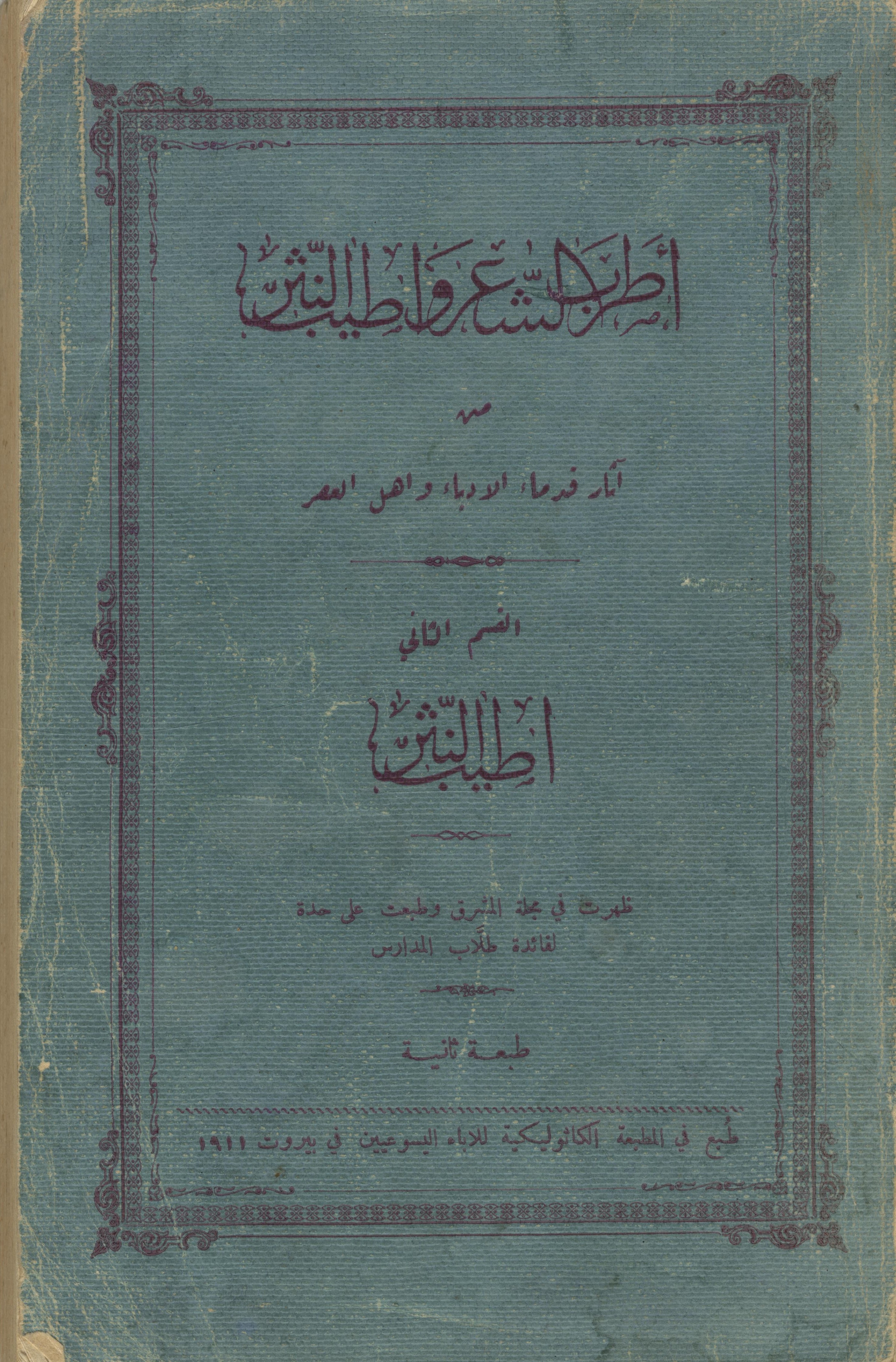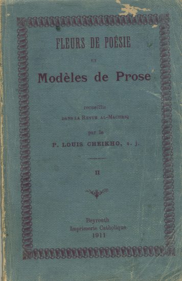 Small 8vo. [2], 287 pp., Arabic text, publisher’s original wrappers, slightly worn, title in Arabic & French, pencil note on endpaper, otherwise copy inside clean & in good condition, Imprimerie Catholique, Beirut, second edition, 1911.