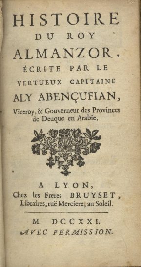 Histoire du Roy Almanzor, écrite par le Vertueux Capitaine Aly Abençufian, Viceroy, & Gouverneur des Provinces de Deuque en Arabie.