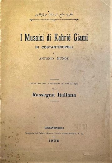 8vo. Italian text, 20 pp., 1 plan, 6 figures in text, stapled wrappers, soiled, blade cut to front cover and first 10 pages without any loss to text, Levant Herald, Constantinople, 1906.