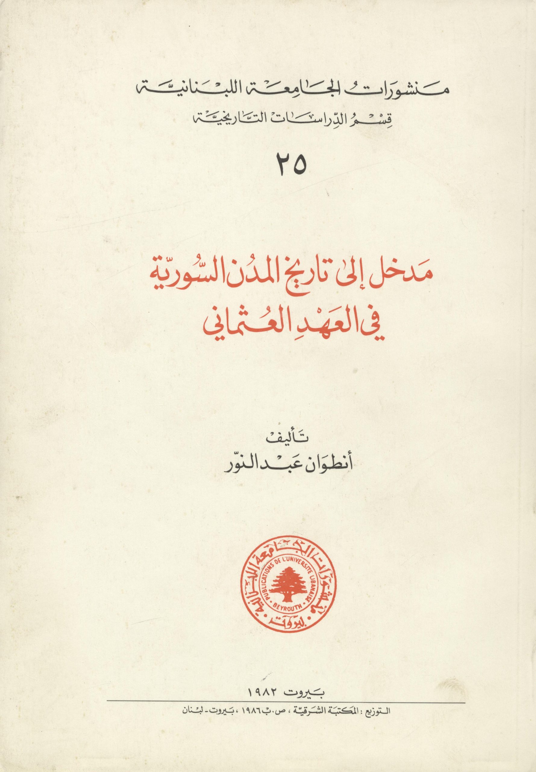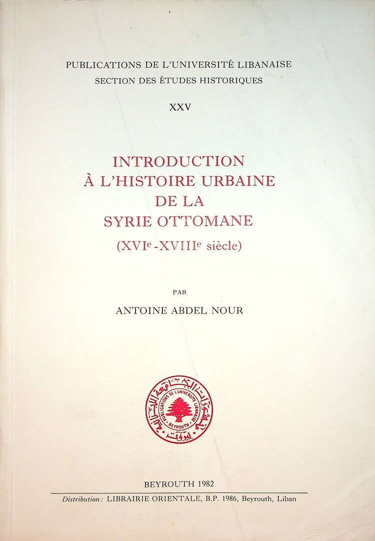 Introduction a l’Histoire Urbaine de la Syrie Ottomane (XVIe-XVIIIe siecle).