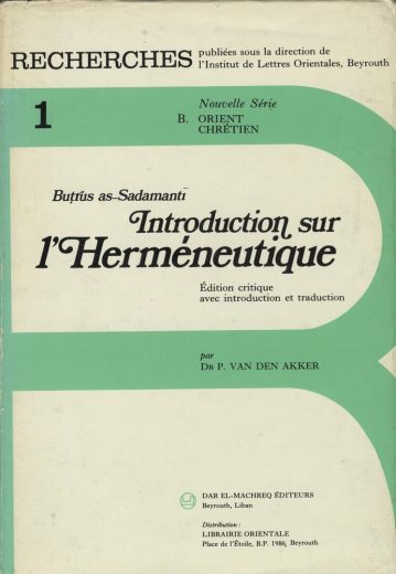 8vo. xiii, 152 pp of French text, 54 pp of Arabic text, translated & introduced by Piet Van Den Akker, index, original boards in slightly rubbed round the edges d/w, Recherches publiees sous la direction de L’Institut de Lettres Orientales, Beyrouth, Nouvelle Serie No: 1, B. Orient Chretien, Dar El-Machreq, Beirut, first edition, 1972.