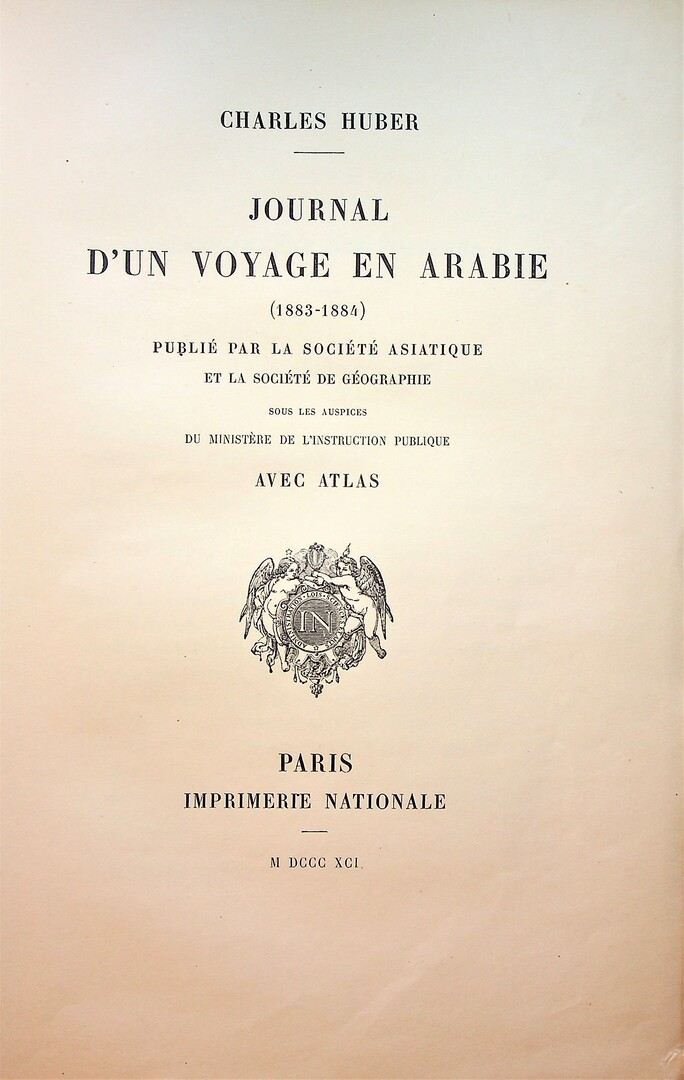 Journal d’un voyage en Arabie 1883-1884. Publié par la Société Asiatique et la Société de Géographie sous les auspices du Ministére de L’Instruction Publique avec atlas.