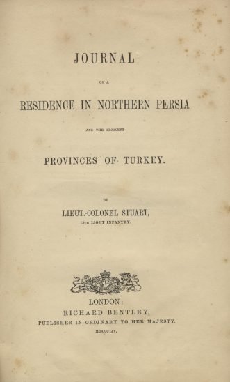 Stuart travelled throughout Persia visiting Tabreez, Tehran, Seistan, Allahad, Kurdistan and returning to England via Warsaw.