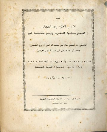 Kitab al-Anis al-Mutrib bi Rawd Al-Qurtas fi Akhbar Muluk Al-Maghrib Wa Tareekh Madinat Fas. Annales Regum Mauritaniae A Condito Idrisidarum Imperio Ad Annum Fugae 726. TWO VOLUMES. كتاب الأنيس المطرب بروض القرطاس في أخبار ملوك المغرب