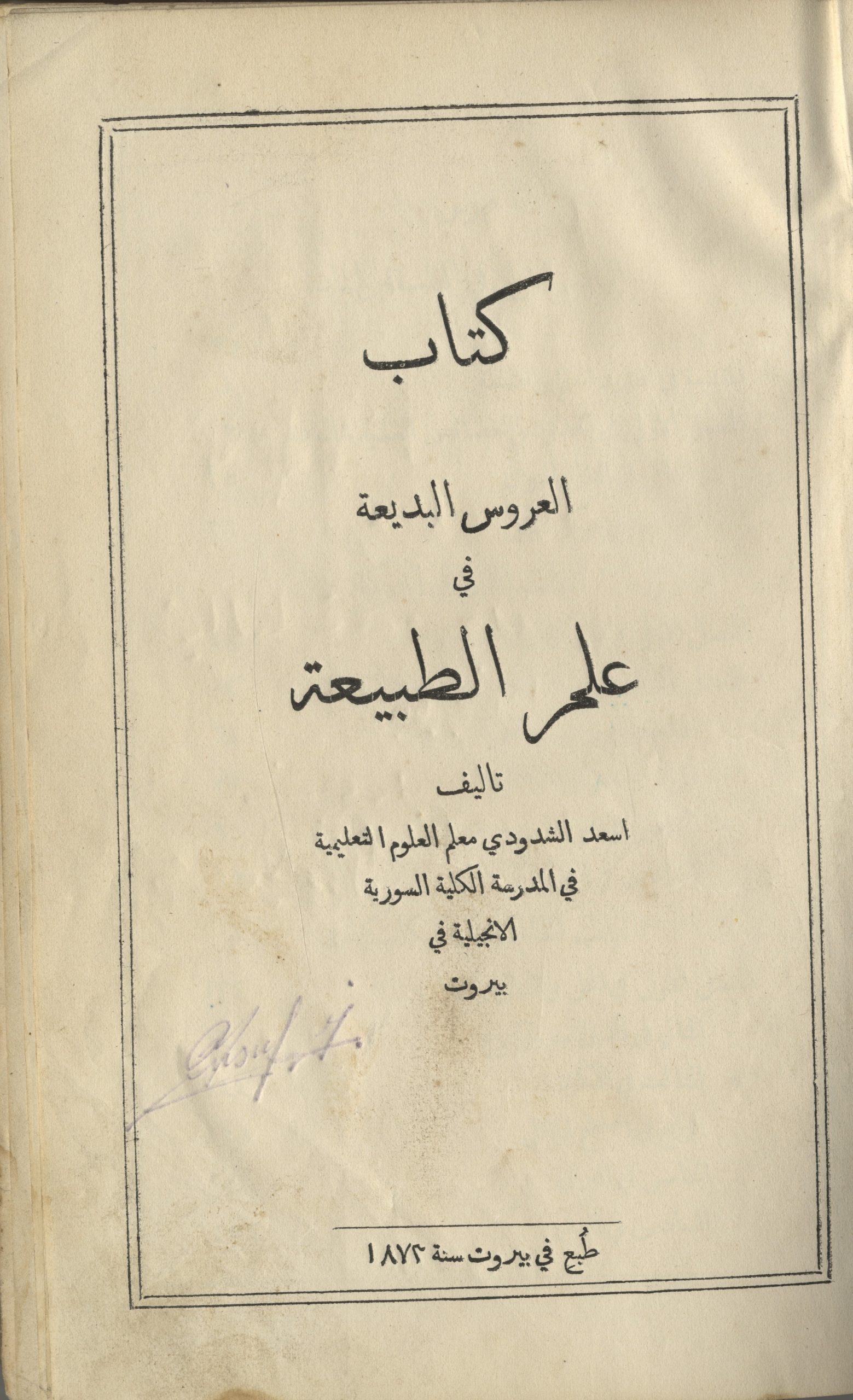 Kitab al-’Arous al-Badi’a Fi ‘Ilm al-Tabi’a.