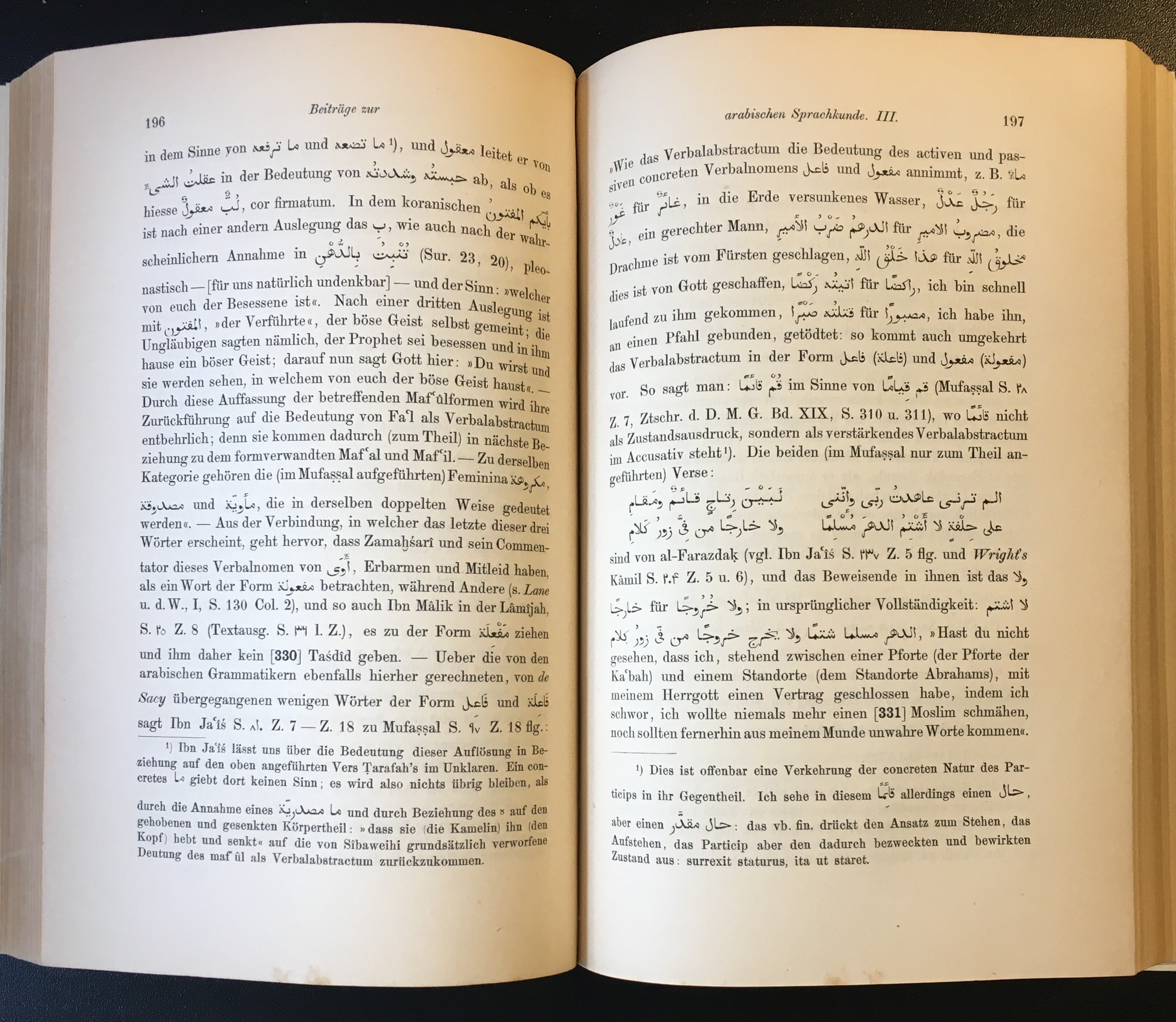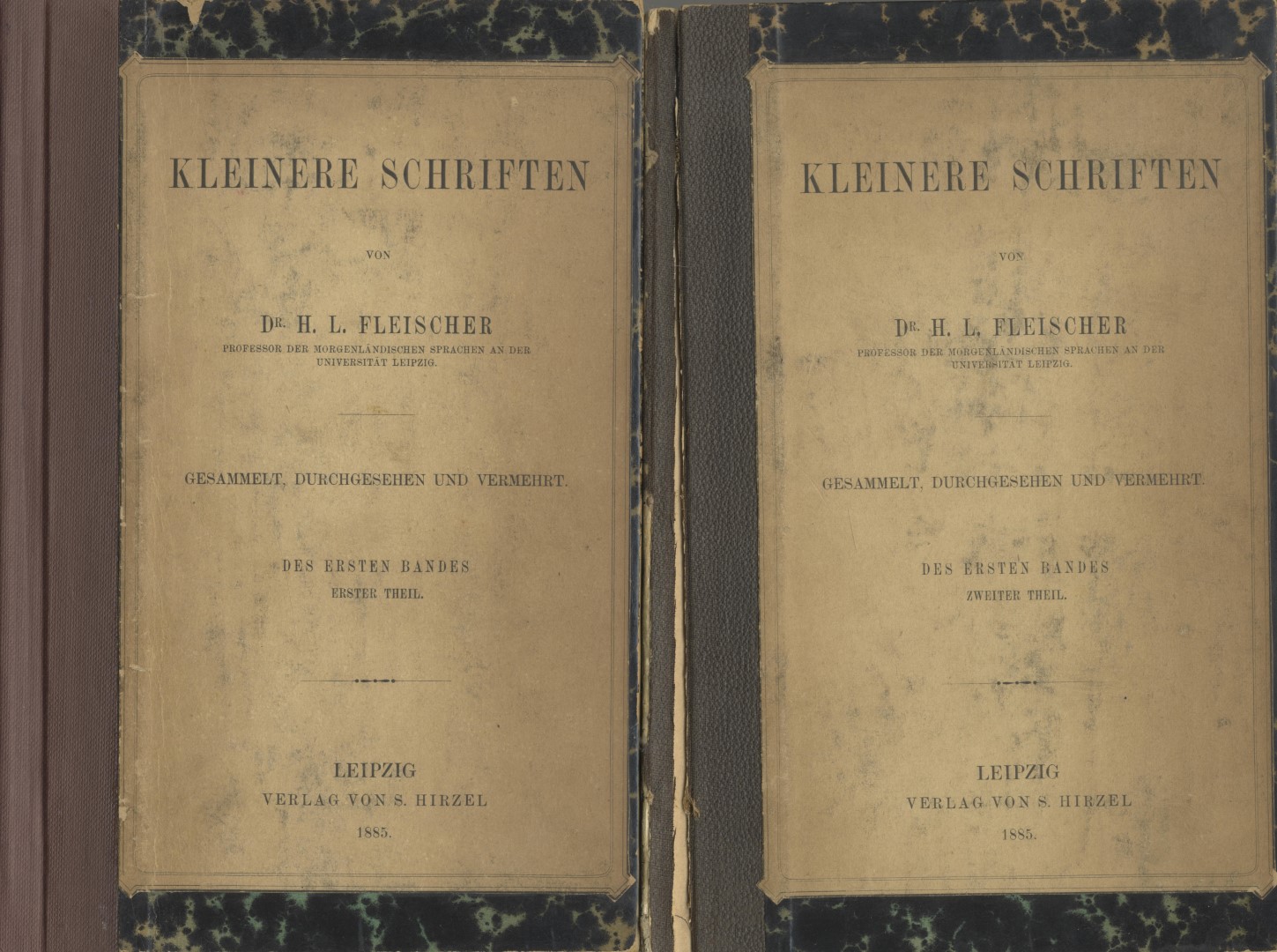 8vo. Volume I: iv, 370 pp., / Volume II: pages 371-844, cloth backed boards, original wrappers tipped in on upper covers, new spine & endpapers to volume 1, covers soiled, upper cover of volume 1 detached, scattered foxing, mainly to end leaves, set inside in good condition, from the library of Dr GHA Juynboll, Verlag von S. Hirzel, Leipzig, first edition, 1885.