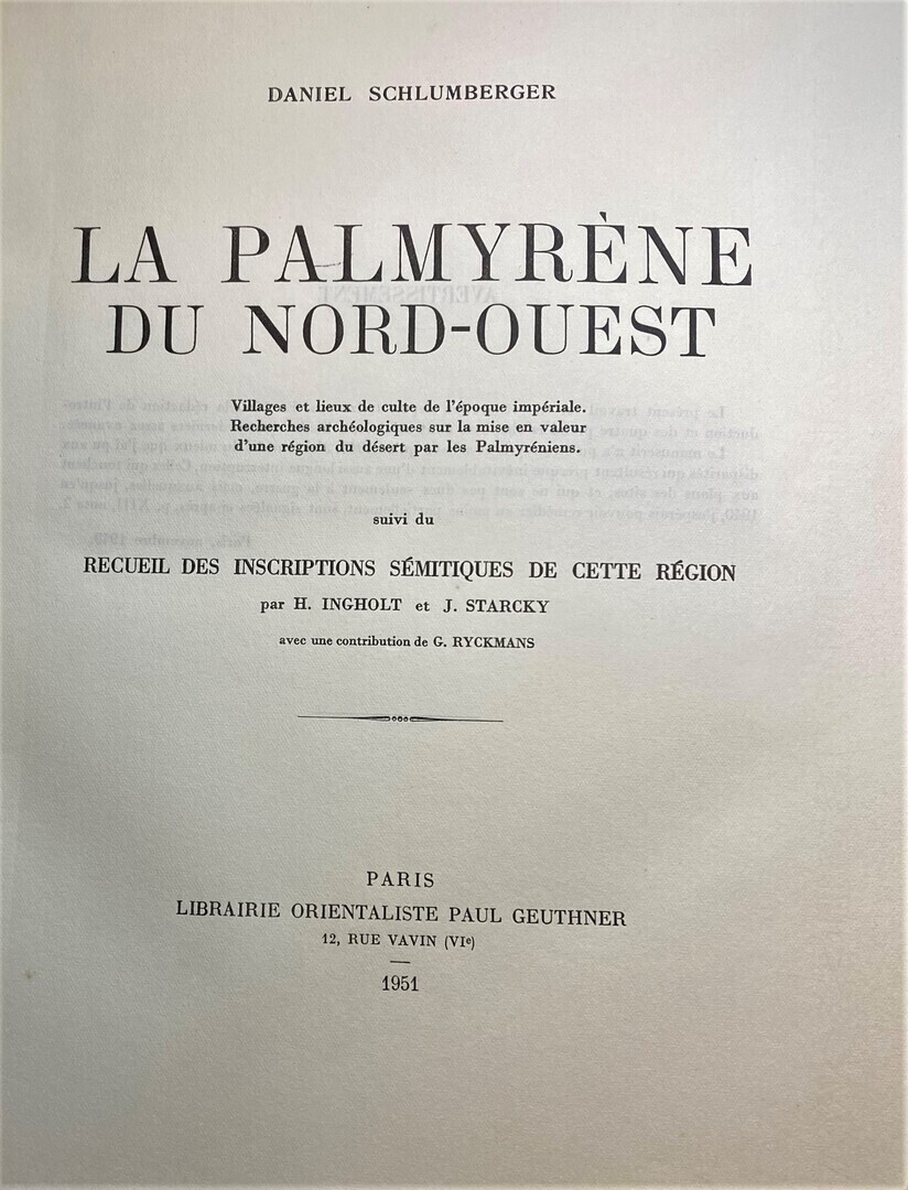 4to. xiv, 192 pp., [1], 48 b/w plates, numerous figures in text, 1 map, several plans, half-title, cloth backed boards, copy in very good condition, Institut Francais d'Archéologie de Beyrouth, Bibliotheque Archéologique & Historique, Tome XLIX, Librairie Orientaliste Paul Geuthner, Paris, 1951.