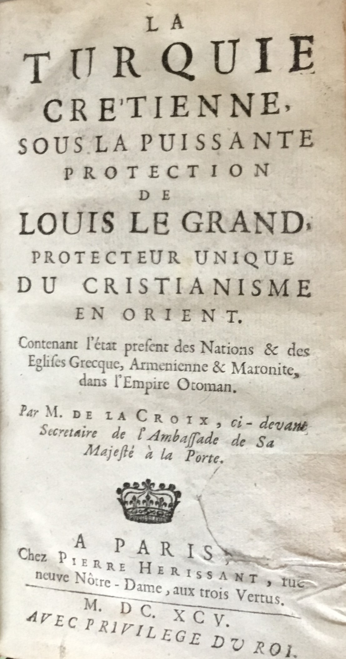 La Turquie Cretienne, Sous La Puissante Protection de Louis Le Grand, Protecteur Unique du Christianisme en Orient. Contenant l’état Présent des Nations & des Églises Grecque, Armenienne & Maronite, dans l’Empire Ottoman.