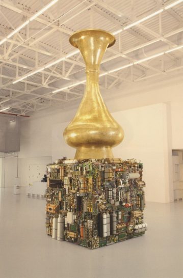 8vo. Text Volume: 66 pp., of English text, 54 pp., of Arabic text, foreword by H.E. Sheikha Al Mayassa bint Hamad bin Khalifa Al Thani / Plates Volume: unpaginated, numerous b/w & colour photographs of the artist’s work, each with a caption on opposite page / Folio containing 34 charcoal drawings by the artist, gilt cloth fitted in gilt cloth box, title and artist’s name calligraphed in black on the two plates volumes, published by Mathaf, Doha, first edition, 2013.