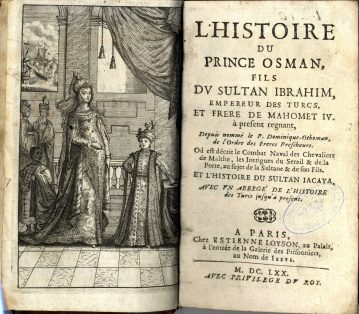 L’Histoire du Prince Osman, fils du Sultan Ibrahim, Empereur des Turcs, et frère de Mahomet IV à présent régnant, depuis nommé le P. Dominique-Othoman, de l’ordre des Frères Préscheurs. Où est décrit le combat naval des chevaliers de Malte, les intrigues du sérail & de la Porte, au sujet de la Sultane & de son fils. TWO PARTS IN ONE VOLUME,