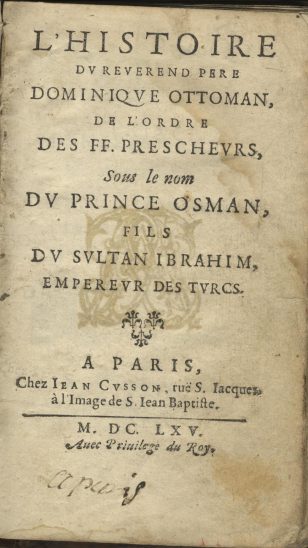 L’Histoire du Révérend Père Dominique Ottoman, de l’ordre des FF. Prescheurs, sous le nom du prince Osman, fils du Sultan Ibrahim, Empereur des Turcs.