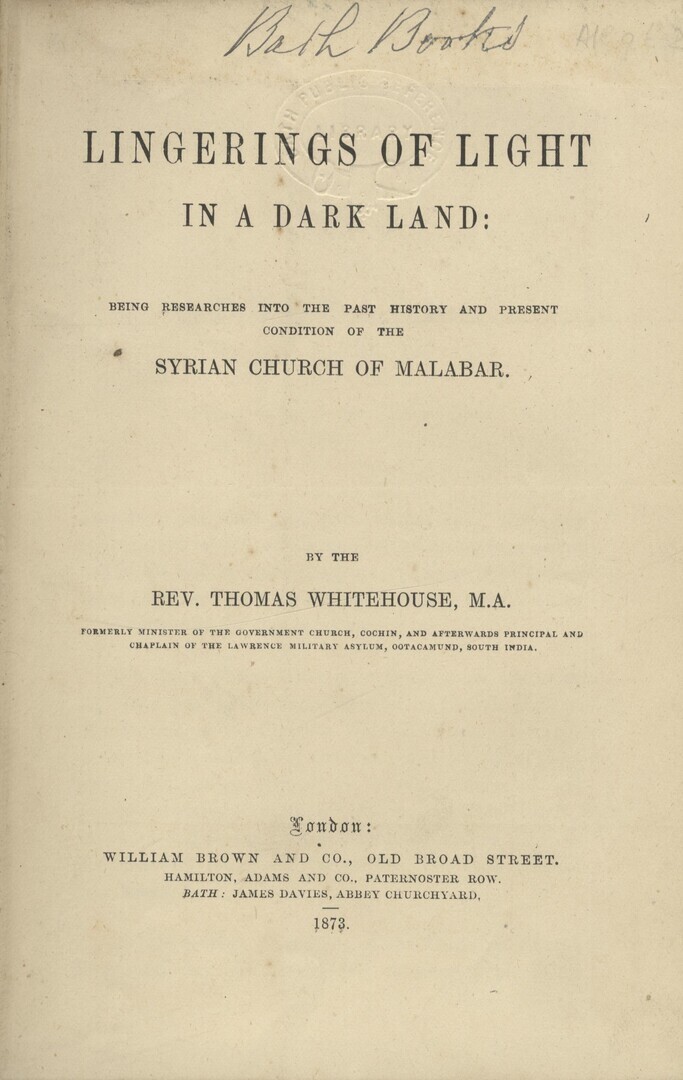Lingerings of Light in a Dark Land: being researches into the past history and present condition of the Syrian Church of Malabar.