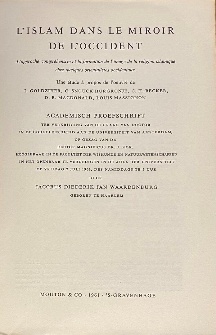 L’Islam dans le Miroir de L’Occident. Comment quelques orientalistes occidentaux se sont penchés sur l’Islam et se sont formé une image de cette religion.
