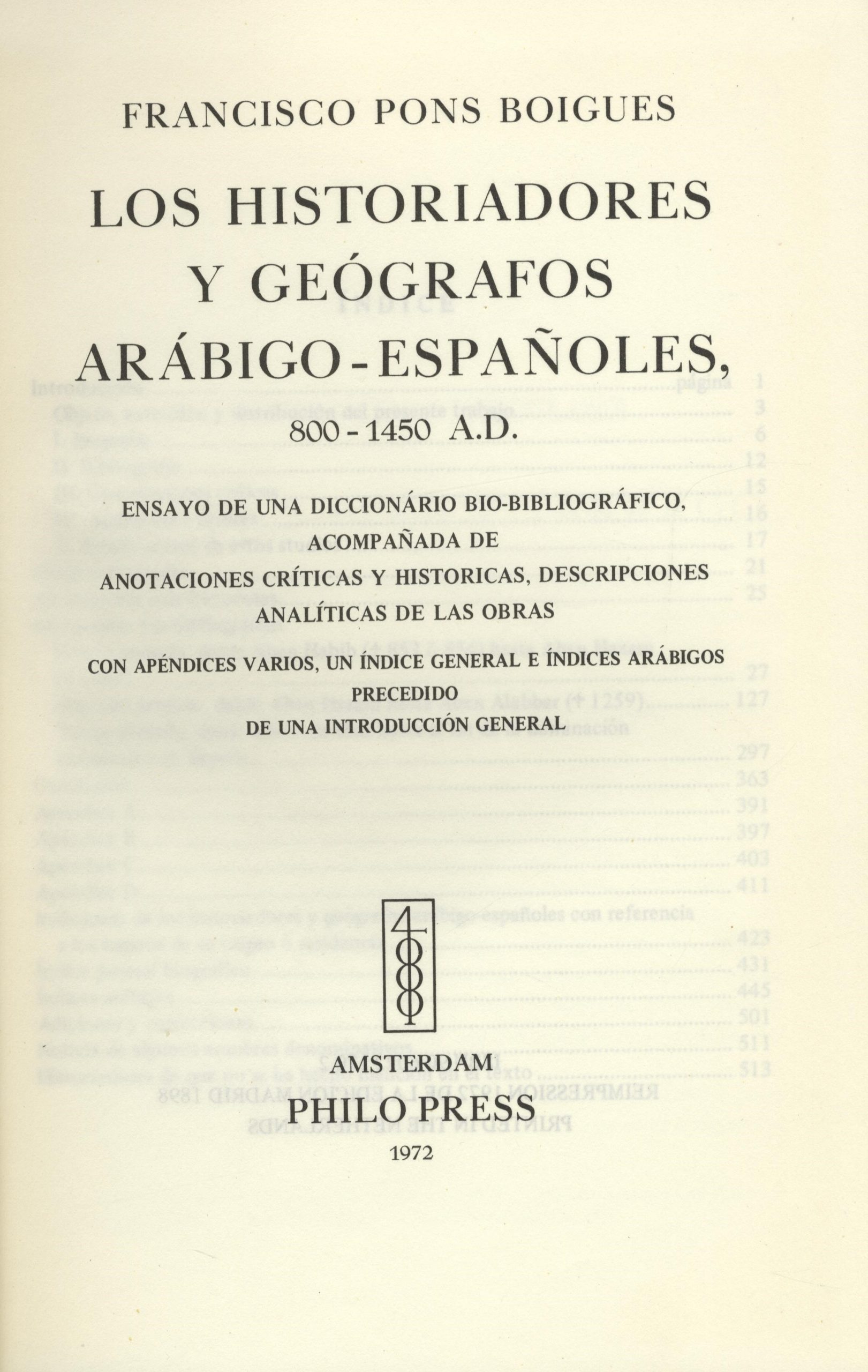 A highly recommended bibliography which lists 303 Arabic authors on geography. This work received the first prize from the National Library as the best book published in Spain in 1898.