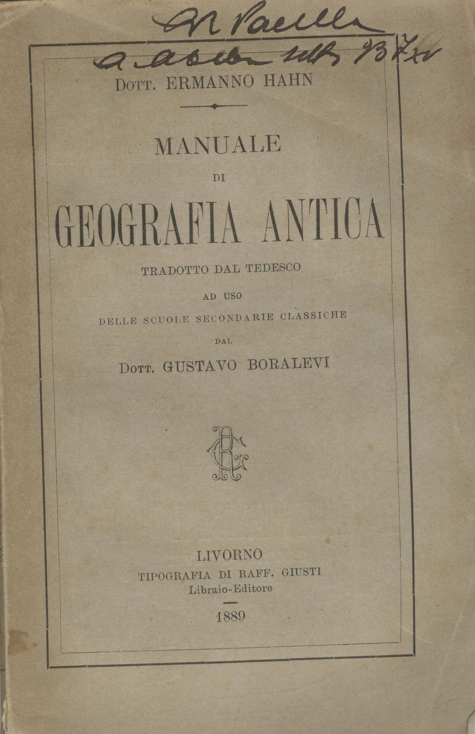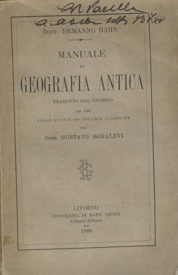 8vo. viii, 234 pp., [1 errata], translated from German by Gustavo Boralevi, publisher’s original wrappers, index, ink inscription on title page and front cover, light shelf wear to wrappers, otherwise copy in good condition, Livorno, Tipografia di Raff. Giusti, 1889.
