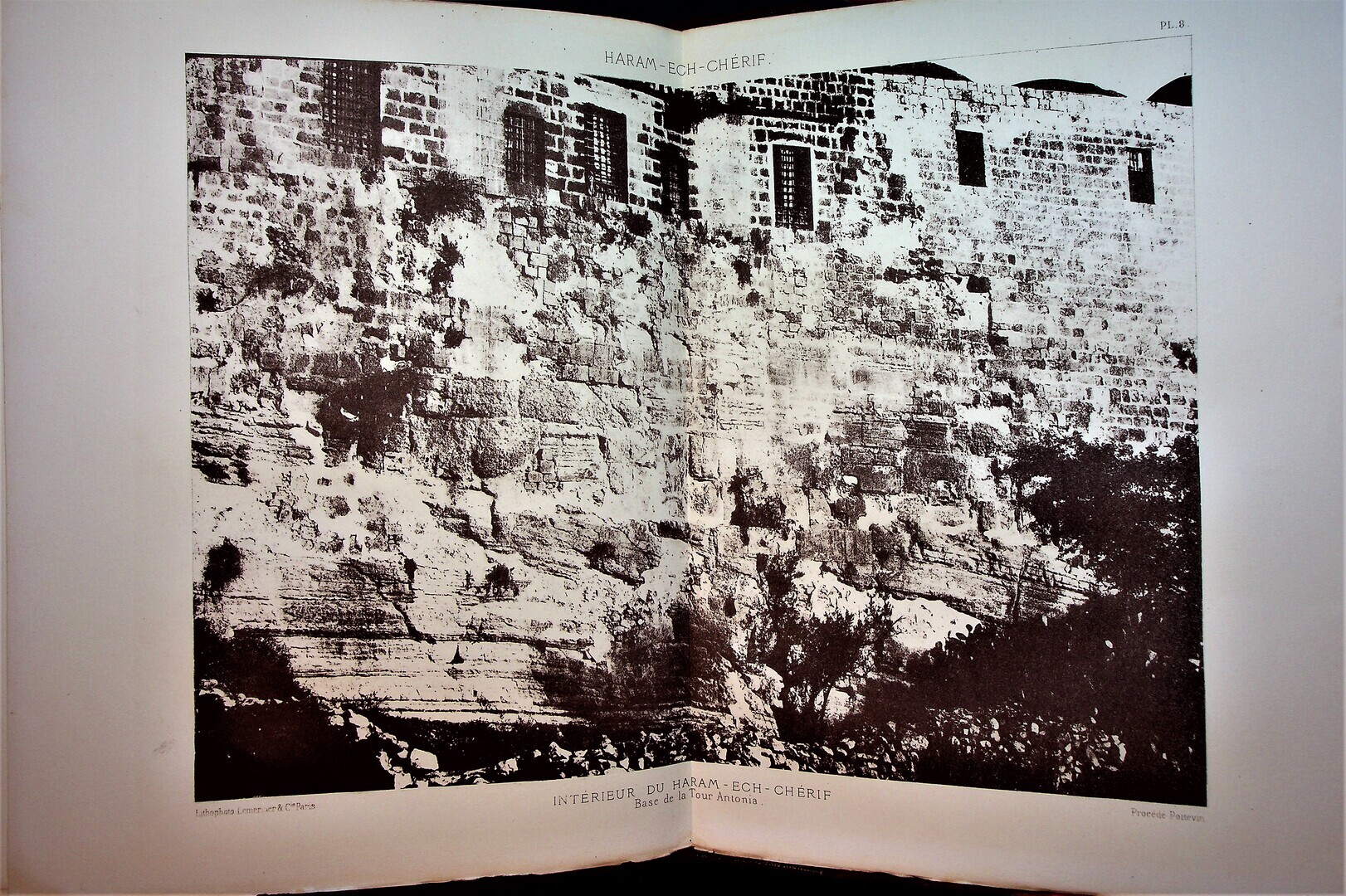 This work is the result of the second trip to the Orient taken by Saulcy in 1863, seeking to disprove the objections of Renan and de Vogue to his thesis on the existence of masonry bricks (or rough cut stones) used in the precinct of the Haram El-Sherif in Jerusalem, vestiges dating back to the Kings of Juda. Saulcy was accompanied by the Architect Mauss and his friend Auguste Salzmann. To support Saulcy’s theories, Salzmann was invited to do a photographic cover of the Haram’s terrace and of the Kings’ Tomb. According to the catalogue of the Louvre’s Exhibition “Felix de Saulcy et la Terre Sainte” in 1982, Salzmann’s calotypes of this trip are unknown to this day. These photographs were not published in a book like those taken in 1856-57, they were printed and reproduced as photolithogravure (Poitevin method) by Lemercier under Salzmann’s directions; and were used to illustrate Saulcy’s articles published in 1866, 1867 and 1872.