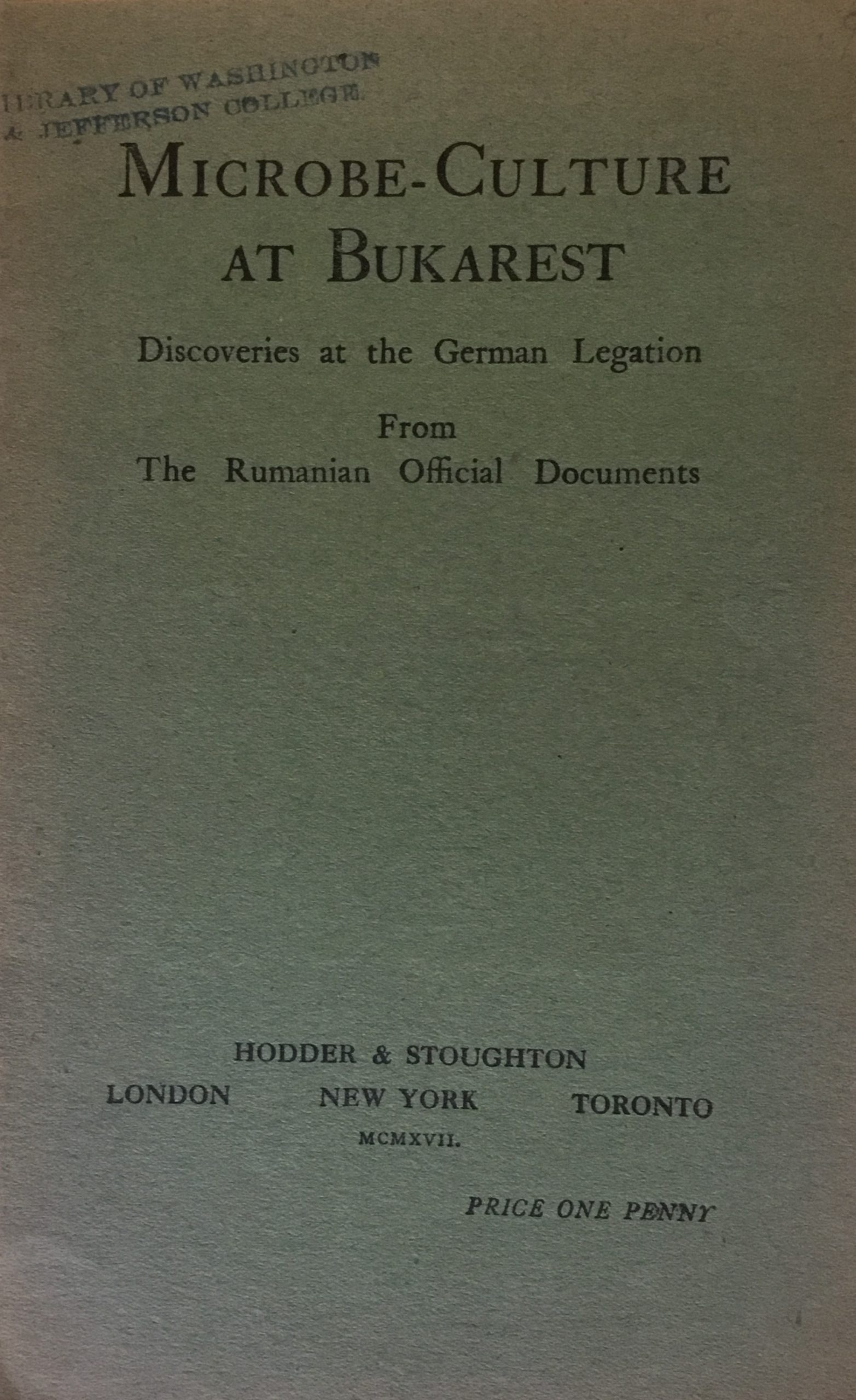 Microbe-Culture at Bukarest. Discoveries at The German Legation from The Rumanian Official Documents.