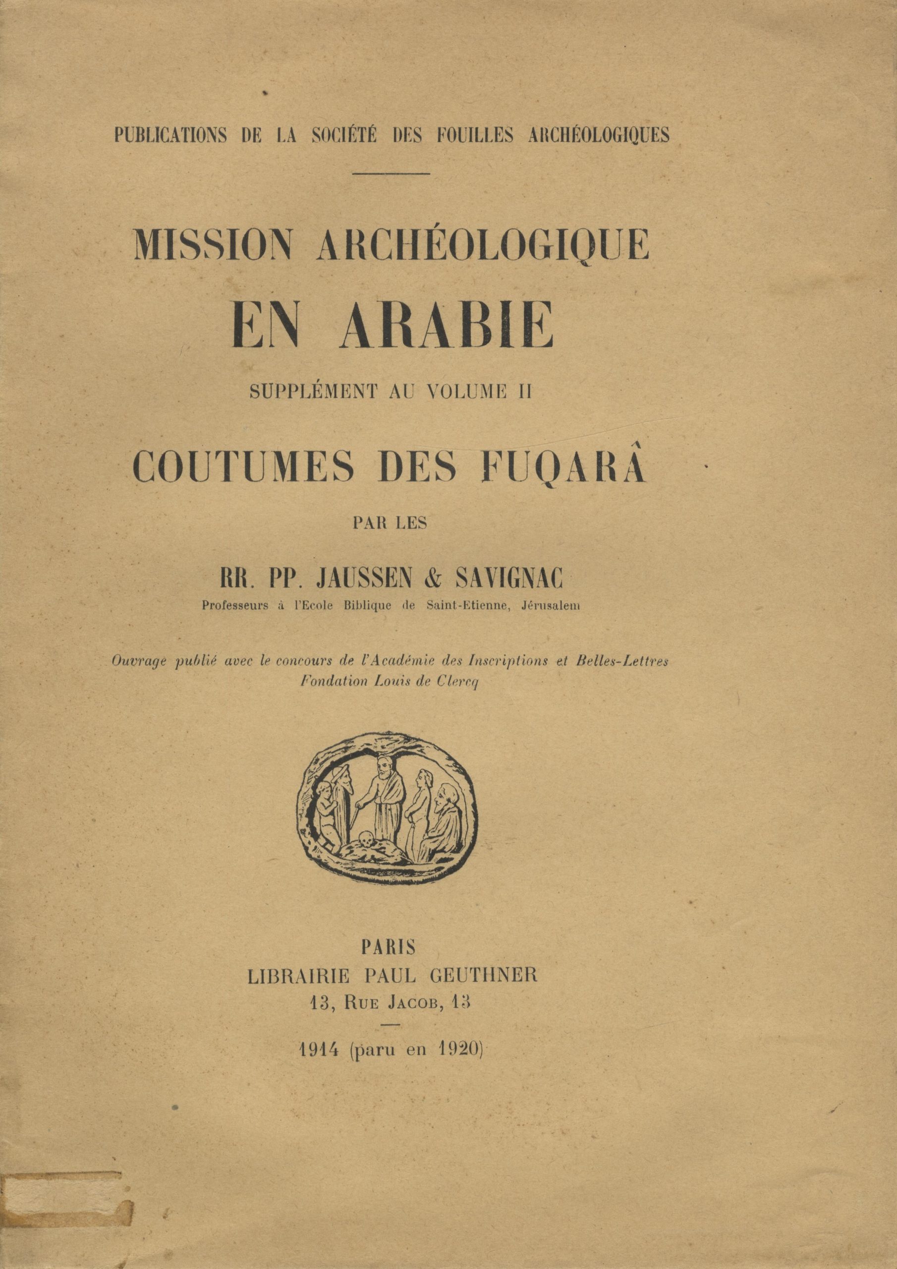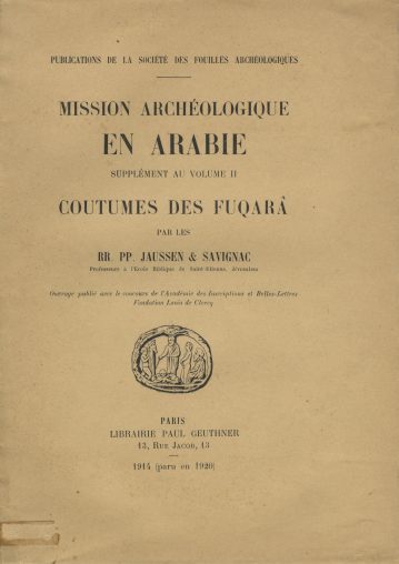 Mission Archeologique en Arabie. Supplement au Volume II: Coutumes des Fuqara.