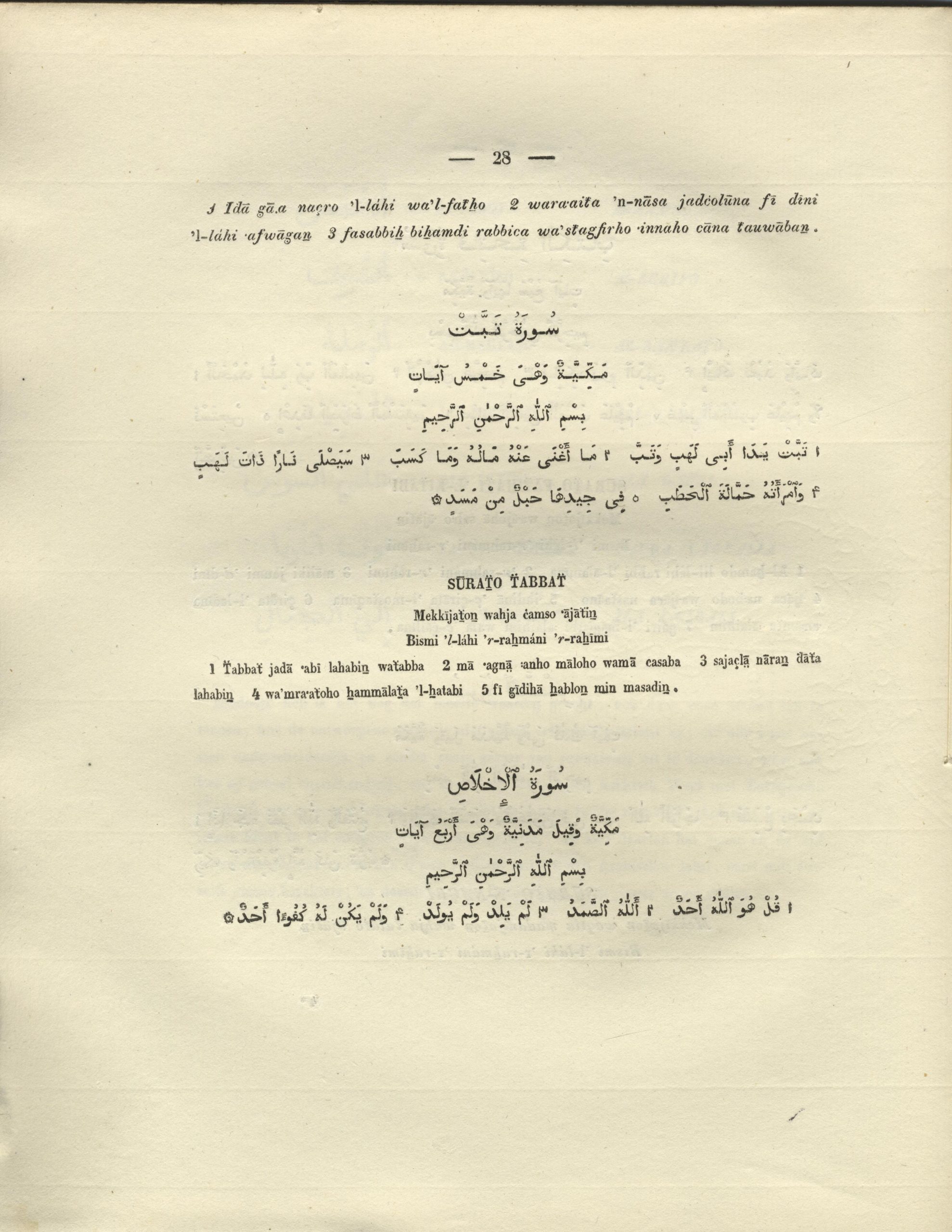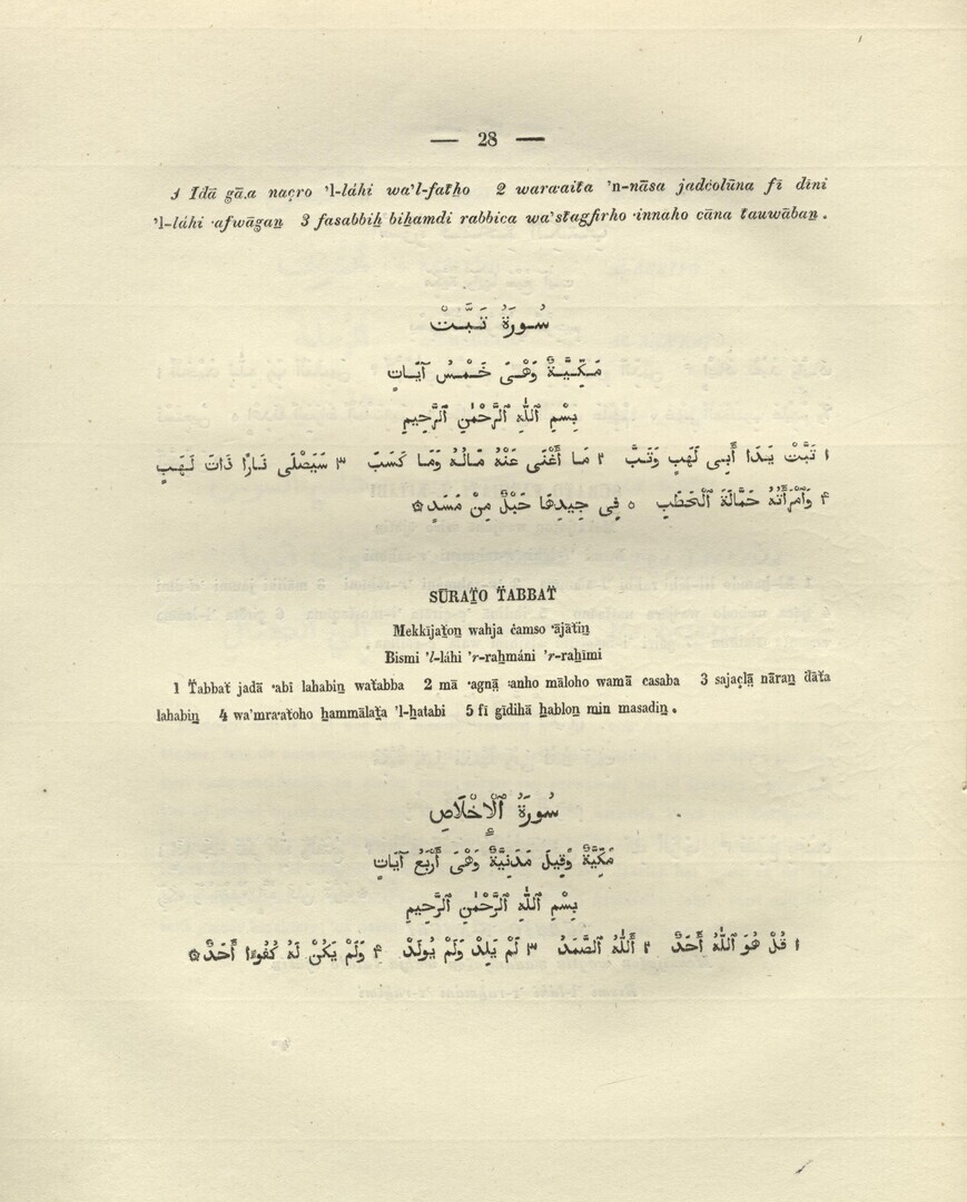 4to. 30 pp., [1], Arabic and Dutch text, trade paper, light damp stain to top margin of first few leaves, Unopened, J Luchtmans, Leiden, 1840.