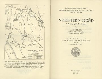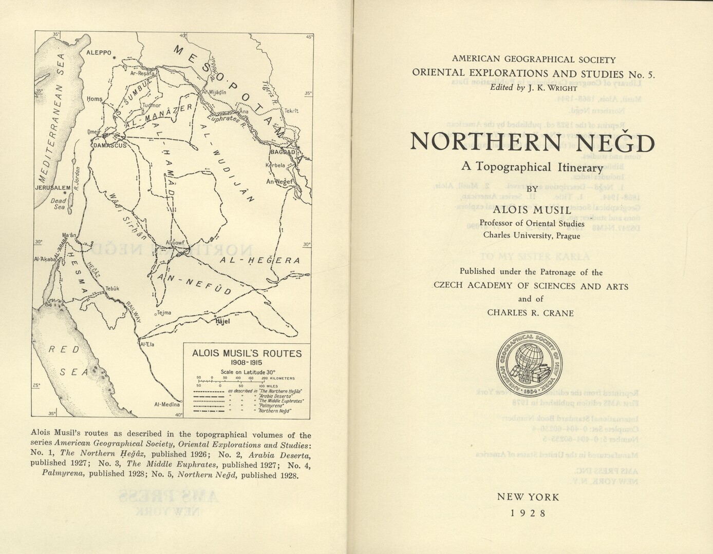 8vo. xiii, 368 pp., 67 illustrations, frontispiece map, cloth, title printed in red on spine & upper cover, biblio, index, MISSING THE MAPS IN SLIPCASE AT BACK , American Geographical Society, Oriental Studies and Explorations No: 5, edited by J. K. Wright, published under the patronage of the Czech Academy of Sciences and Arts and of Charles R. Crane, reprint of the 1928 edition, AMS Press, New York, 1978.