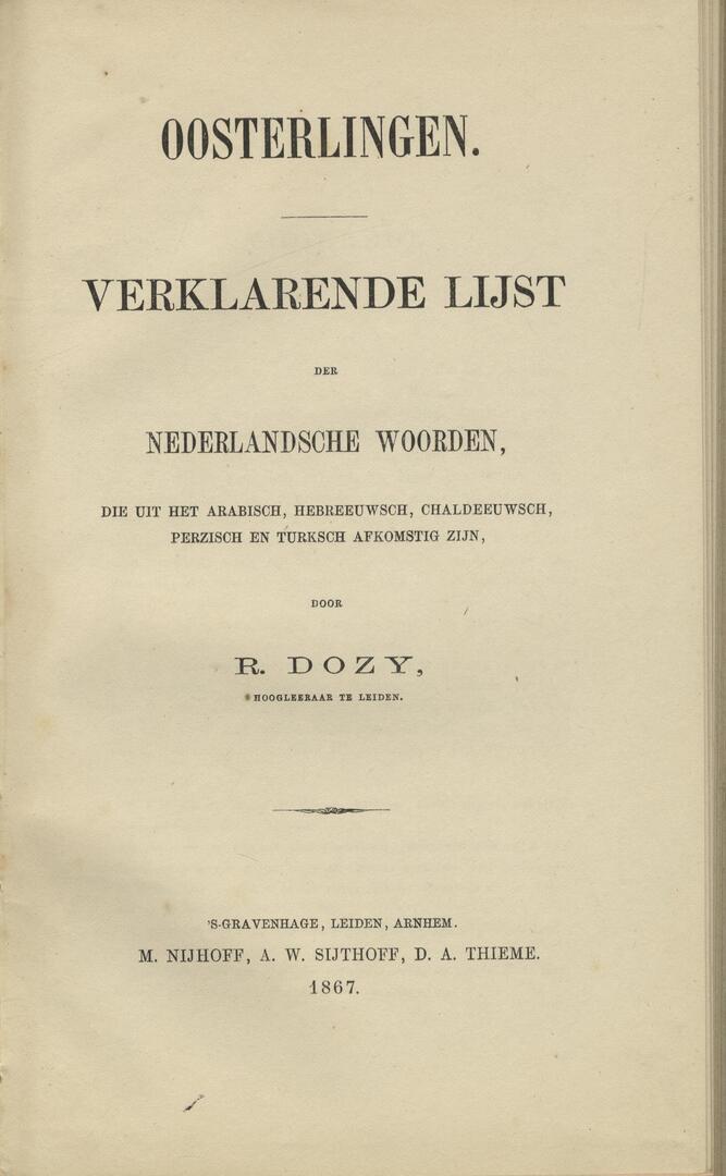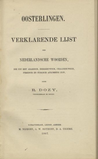 Oosterlingen. Verklarende lijst der Nederlandsche woorden, die uit het Arabisch, Hebreeuwsch, Chaldeeuwsch, Perzisch en Turksch afkomstig zijn