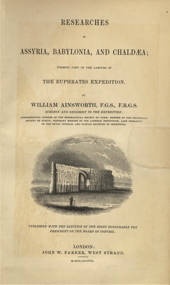 Ainsworth was a surgeon and geologist . He participated in the Euphrates expedition under General Chesney. When the question of the Christians in Chaldea came to the attention of the British strategists, they promoted a joint venture with the Royal Geographical Society, and Ainsworth was chosen to lead the expedition. He travelled with Rassam, a Chaldean Christian who had also accompanied Chesney. They set out sometime in 1838, after the publication of this work. Ainsworth was engaged with other officers in the reconnaissance of the coast of Syria southwards, and the Gulf of Issues, with portions of Cecilia, northwards of the Orentes.