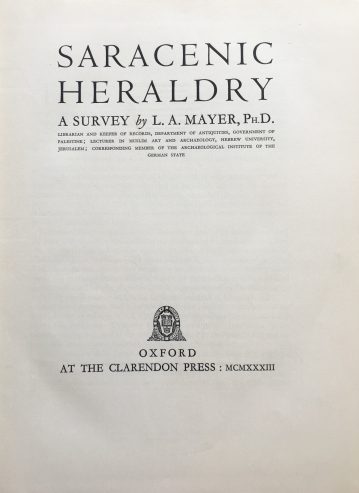 “A fully documented armourial roll of Saracenic sultans and emirs, designed to meet the requirements of students of Muslim archaeology. Mayer’s book covers the geographical area of Syria, Palestine and Egypt during the period from the end of the Crusades to the Ottoman conquest.”