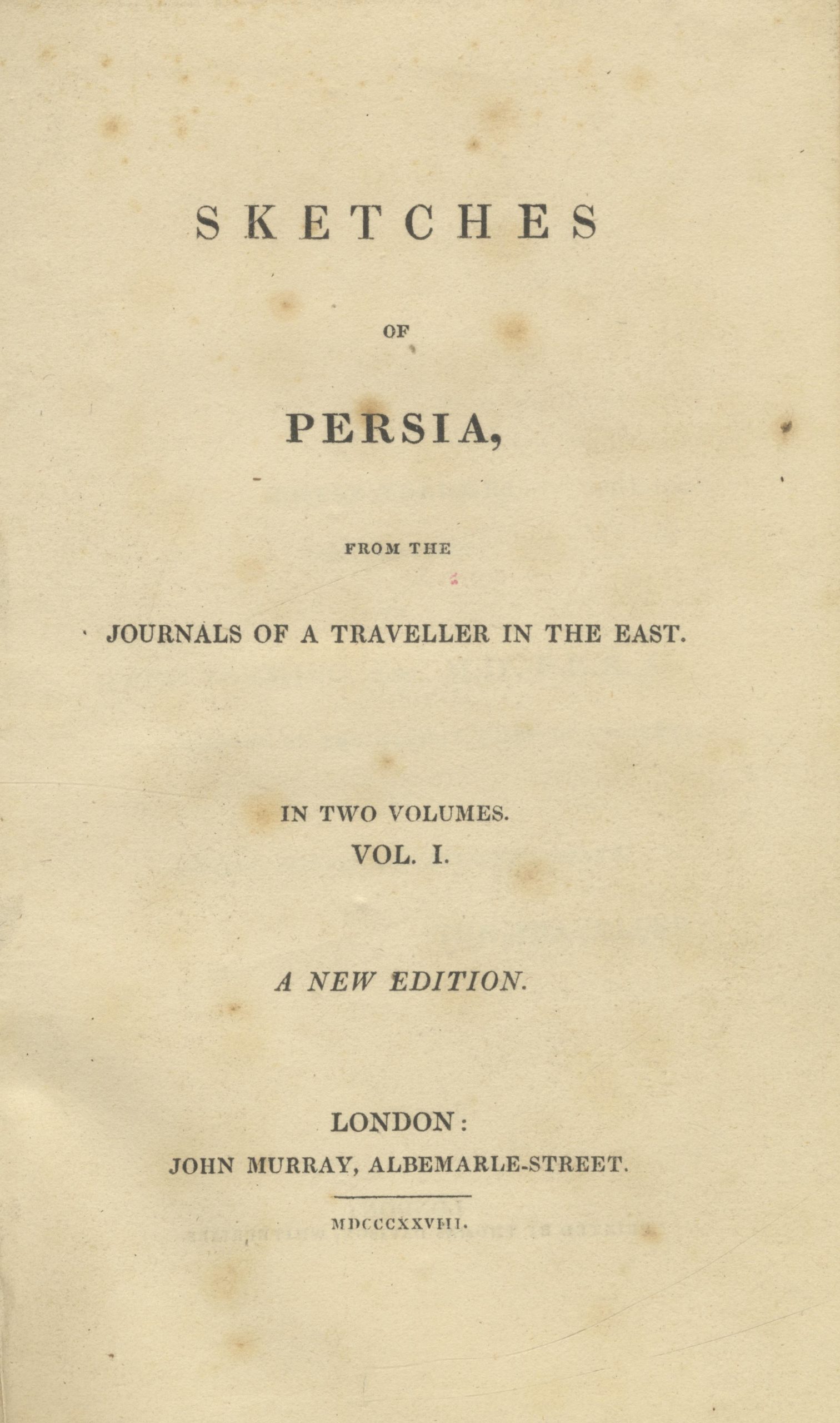 Sketches of Persia from the Journals of a Traveller in the East. TWO VOLUMES.