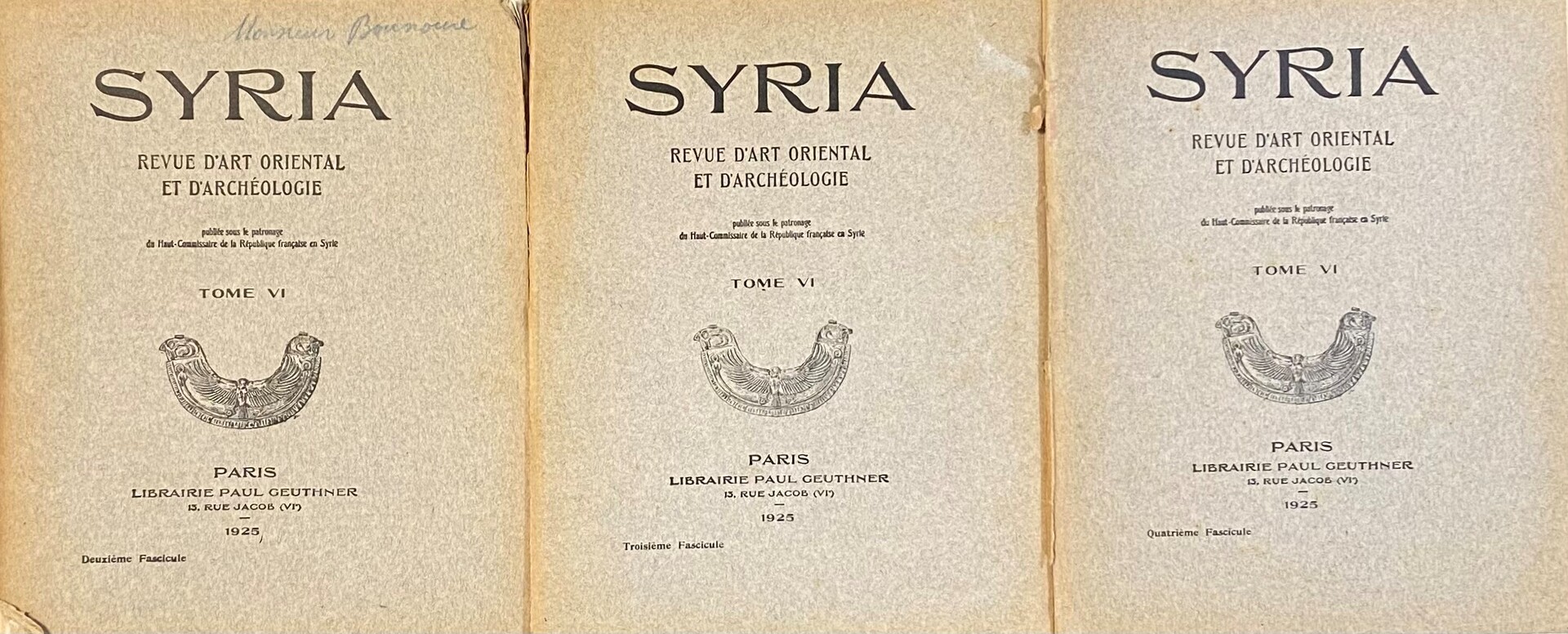Syria. Revue d’Art Oriental et d’Archéologie Tome VI, 1925. Fascicules 2, 3, & 4. Three Fascicules of Four.