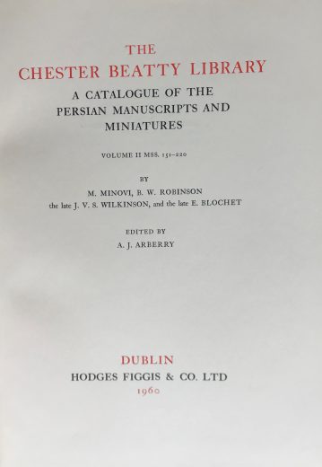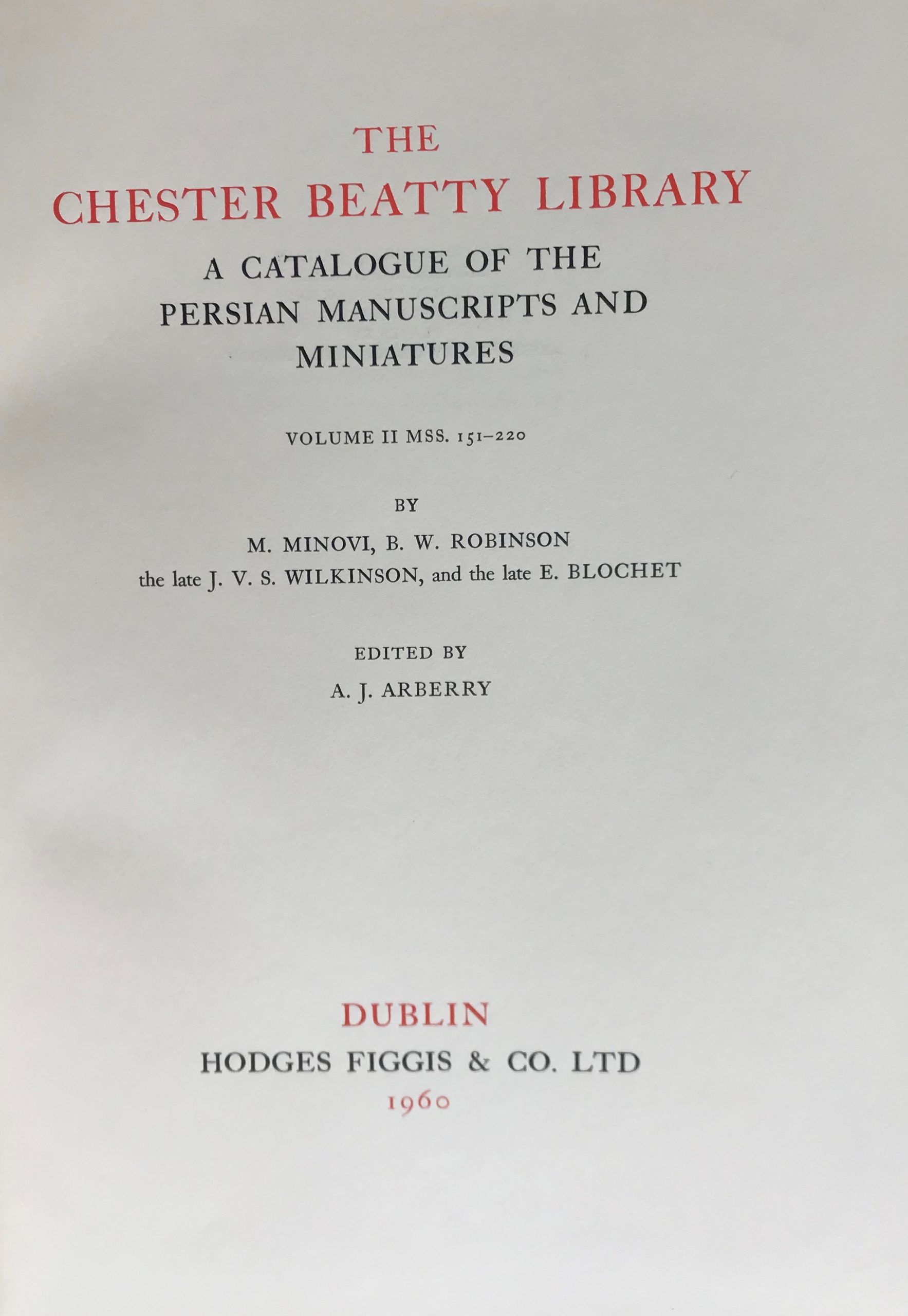 The Chester Beatty Library. A Catalogue of the Persian Manuscripts and Miniatures. Volume II MSS. 151-220.