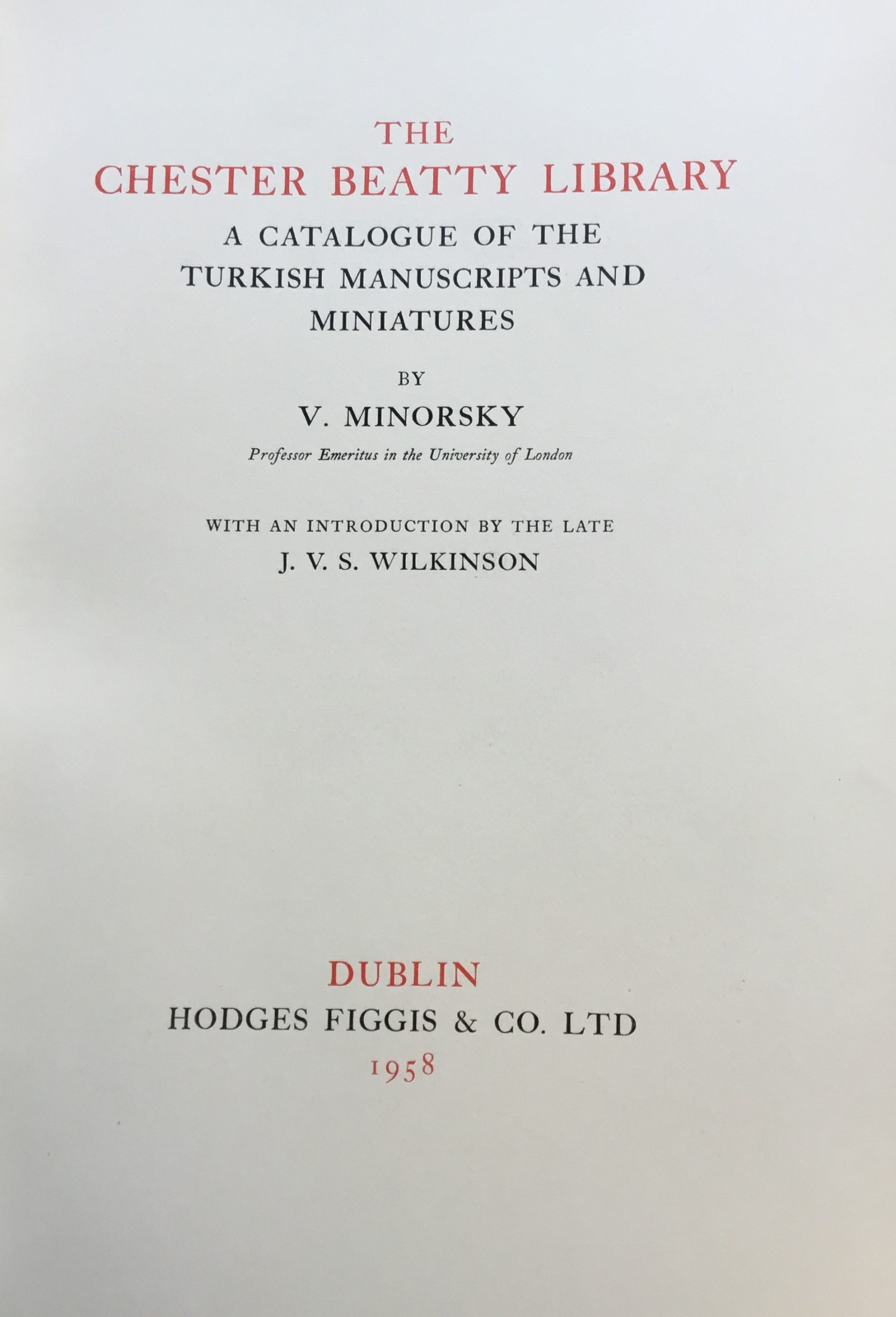The Chester Beatty Library: A Catalogue of the Turkish Manuscripts and Miniatures. With an introduction by the Late J.V.S. Wilkinson.
