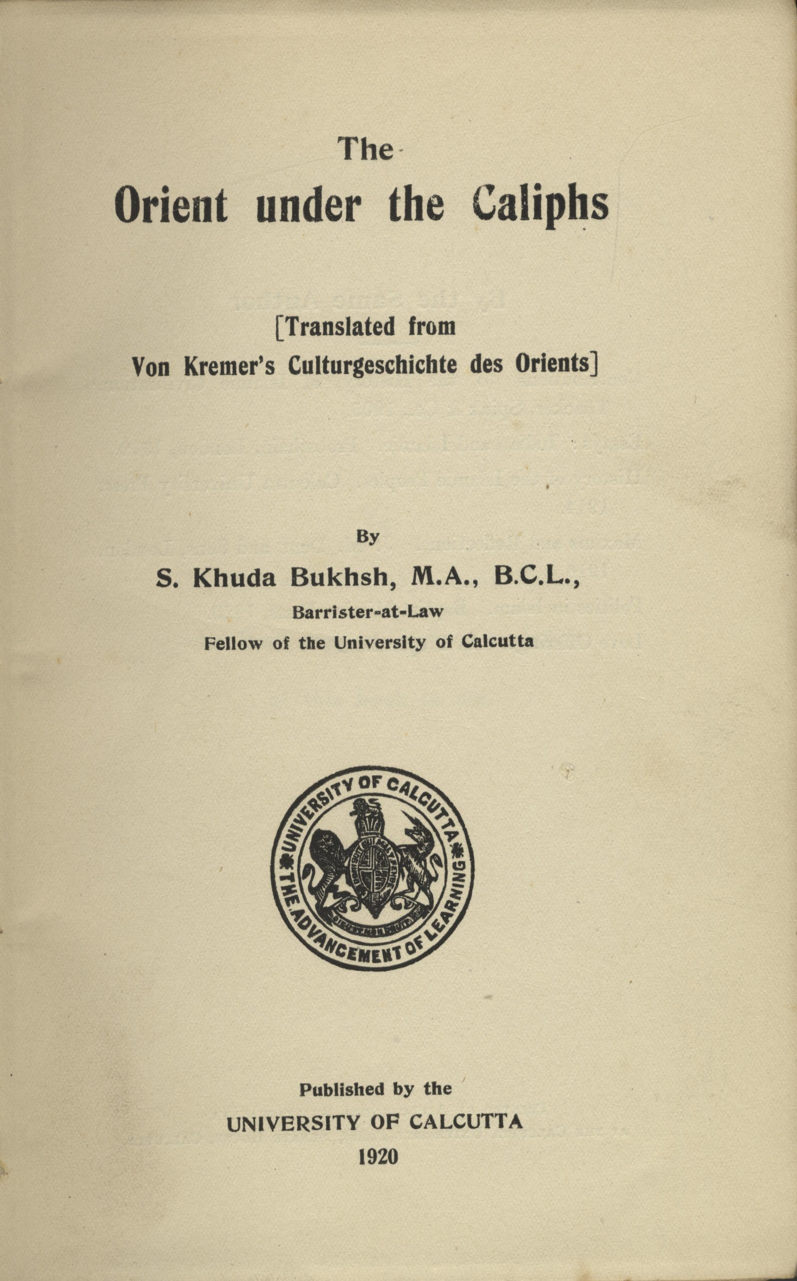 Kremer, Alfred Von / S. Khuda Bukhsh (trsl).