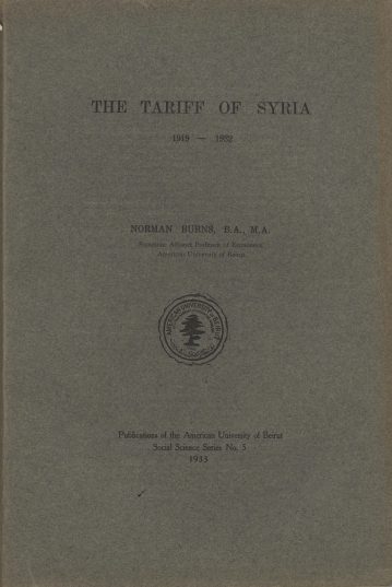 8vo. xi, 317 pp., 1 folding map, 1 folding chart, numerous tables, publisher’s wrappers, biblio, appendices, damp stain affecting lower margin of last 100 pages, pages 142-143 soiled with glue at top margin, top outer edge of pages 261-317 lightly damaged without any loss to text, light damp stain affecting blank top margin of last few leaves, otherwise copy in fairly good condition, publications of the American University of Beirut, Social Sciences Series No. 5, American Press, Beirut, first edition, 1933.