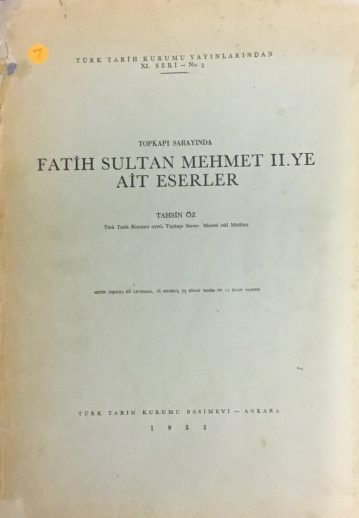 Folio, [viii], 38 pp, [1], Turkish text with some Arabic, + 67 plates hors text, including 16 in colour ( 1 folding) & 11 plans, publisher’s original wrappers, slightly soiled and worn at spine, biblio, index, copy inside clean & in very good condition, from the Turk Tarih Kurumu Yayinlarindan XI, Seri - No. 3, published by Turk Tarih Kurumu Basimevi, Ankara, 1953.