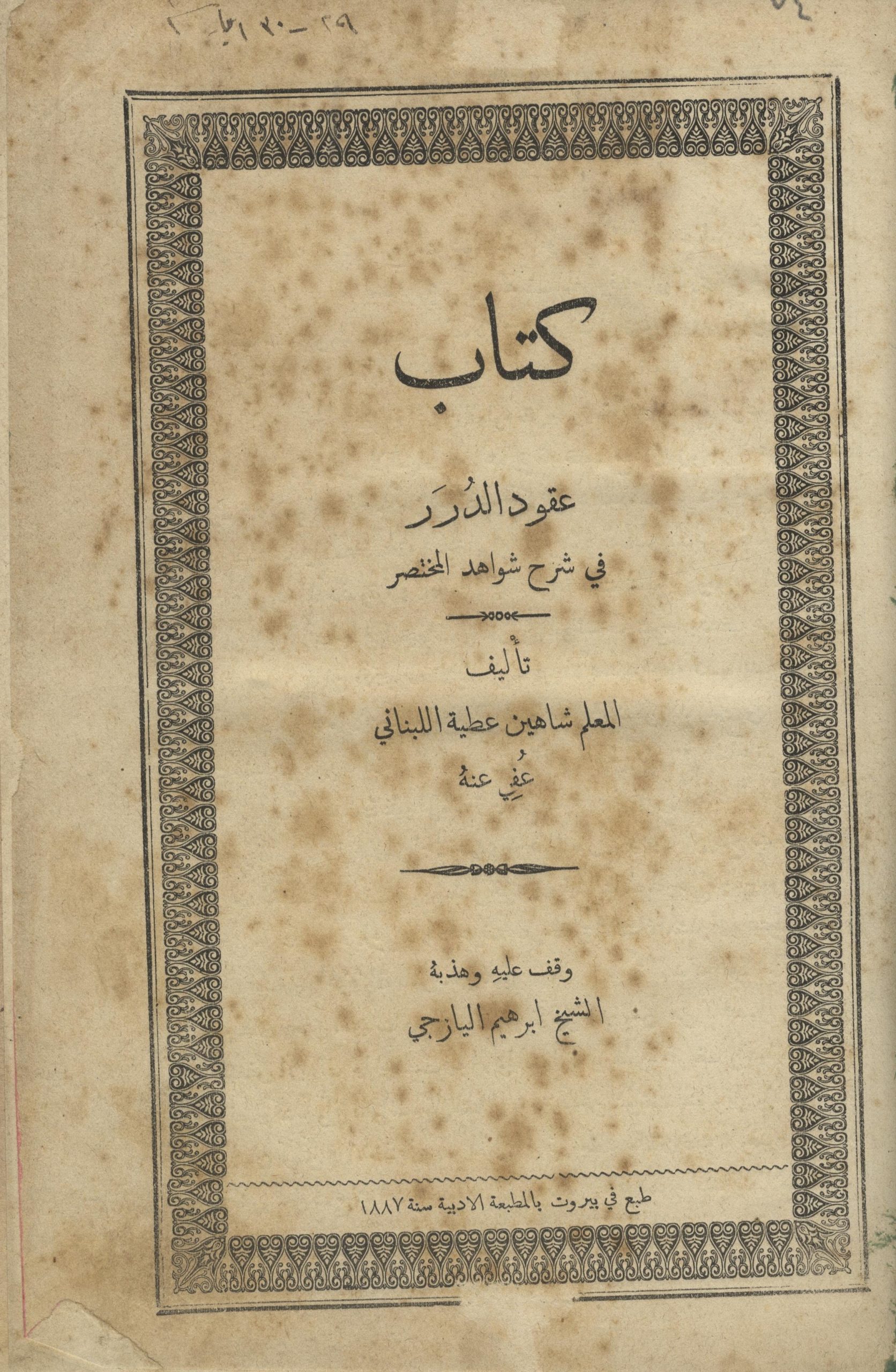 ‘Uqud al-Durar fi Sharh Shawahid al-Mukhtasar.