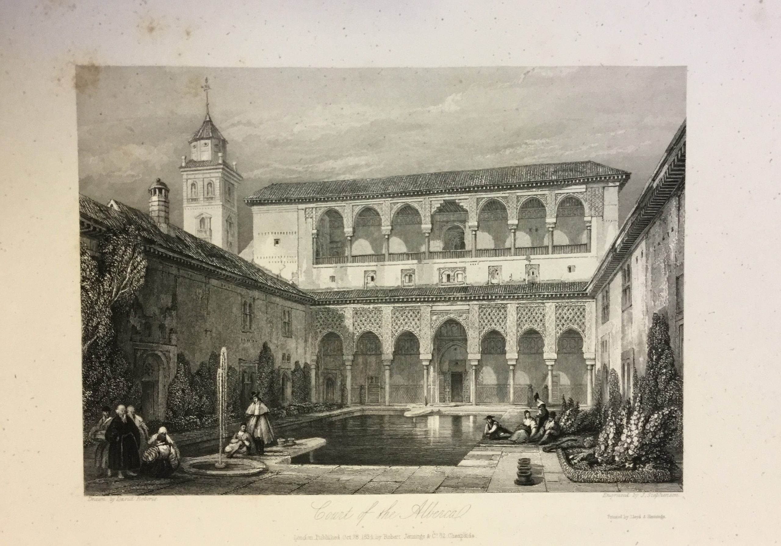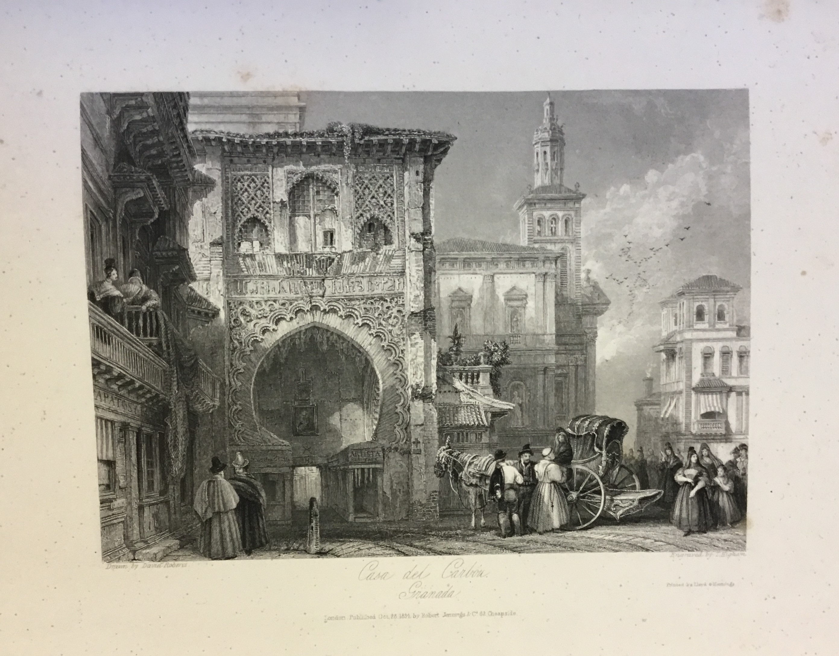 In 1832 he travelled in Spain and Tangiers. He returned at the end of 1833 with a supply of sketches that he elaborated into attractive and popular paintings. The British Institution exhibited his painting “Interior of Seville Cathedral” in 1834, and he sold it for £300. He executed a fine series of Spanish illustrations for the Landscape Annual of 1836. Then, in 1837 a selection of his Picturesque Sketches in Spain was reproduced by lithography. [Wikipedia].